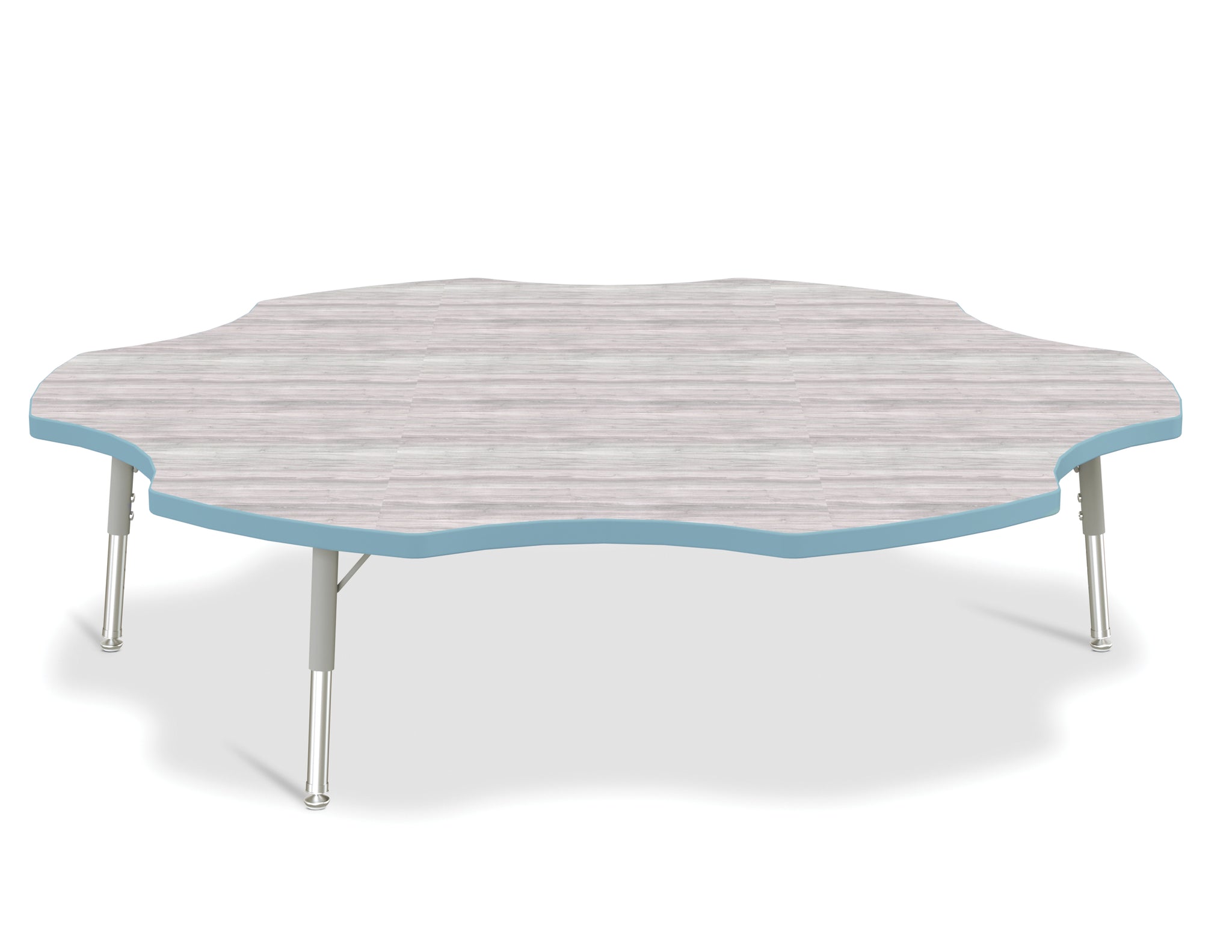 Perfect seating area for any early learning space. Accommodates up to 6 chairs. The legs feature glides that reduce noise, prevent snags, and resist rust. Driftwood Gray tabletop with Coastal Blue TRUEdge and Gray legs.
