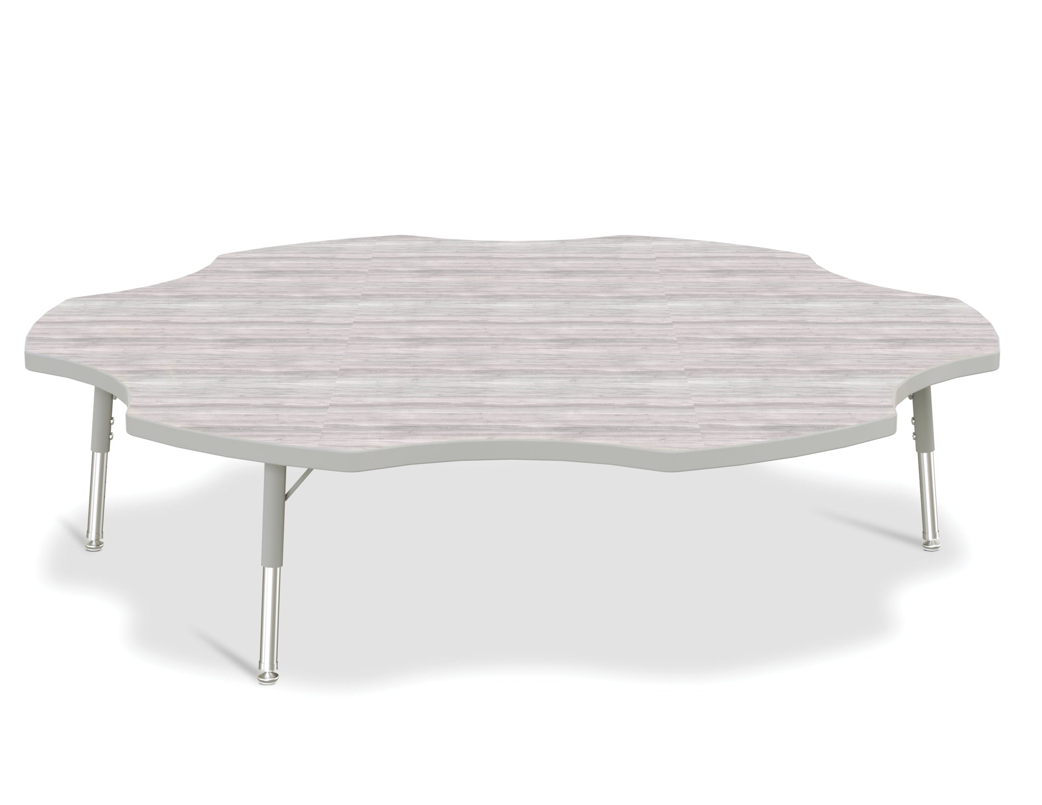 Perfect seating area for any early learning space. Accommodates up to 6 chairs. The legs feature glides that reduce noise, prevent snags, and resist rust. Driftwood Gray tabletop with Gray TRUEdge and Gray legs.