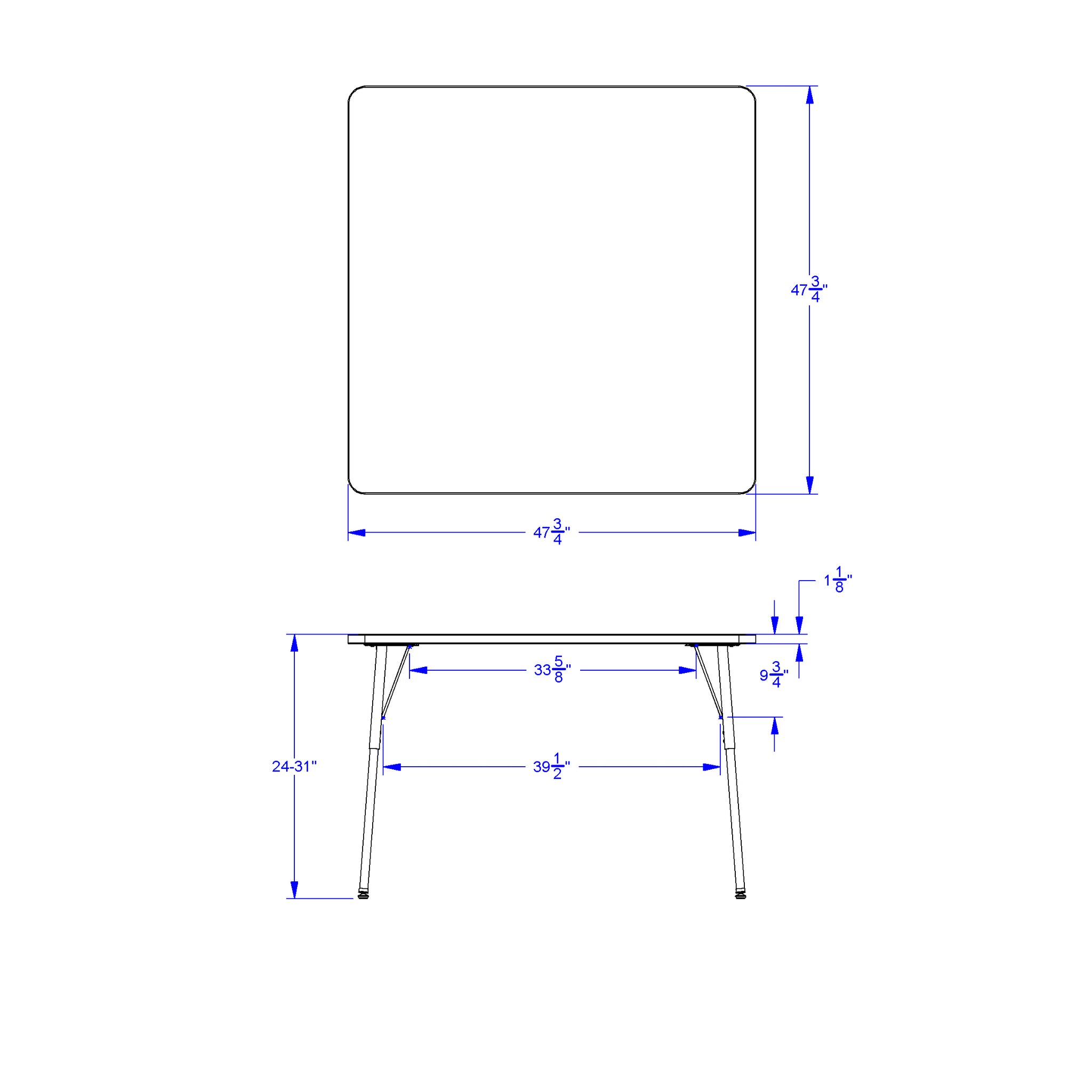 Dimensions: 24-31" High x 48" Wide x 48" Deep
