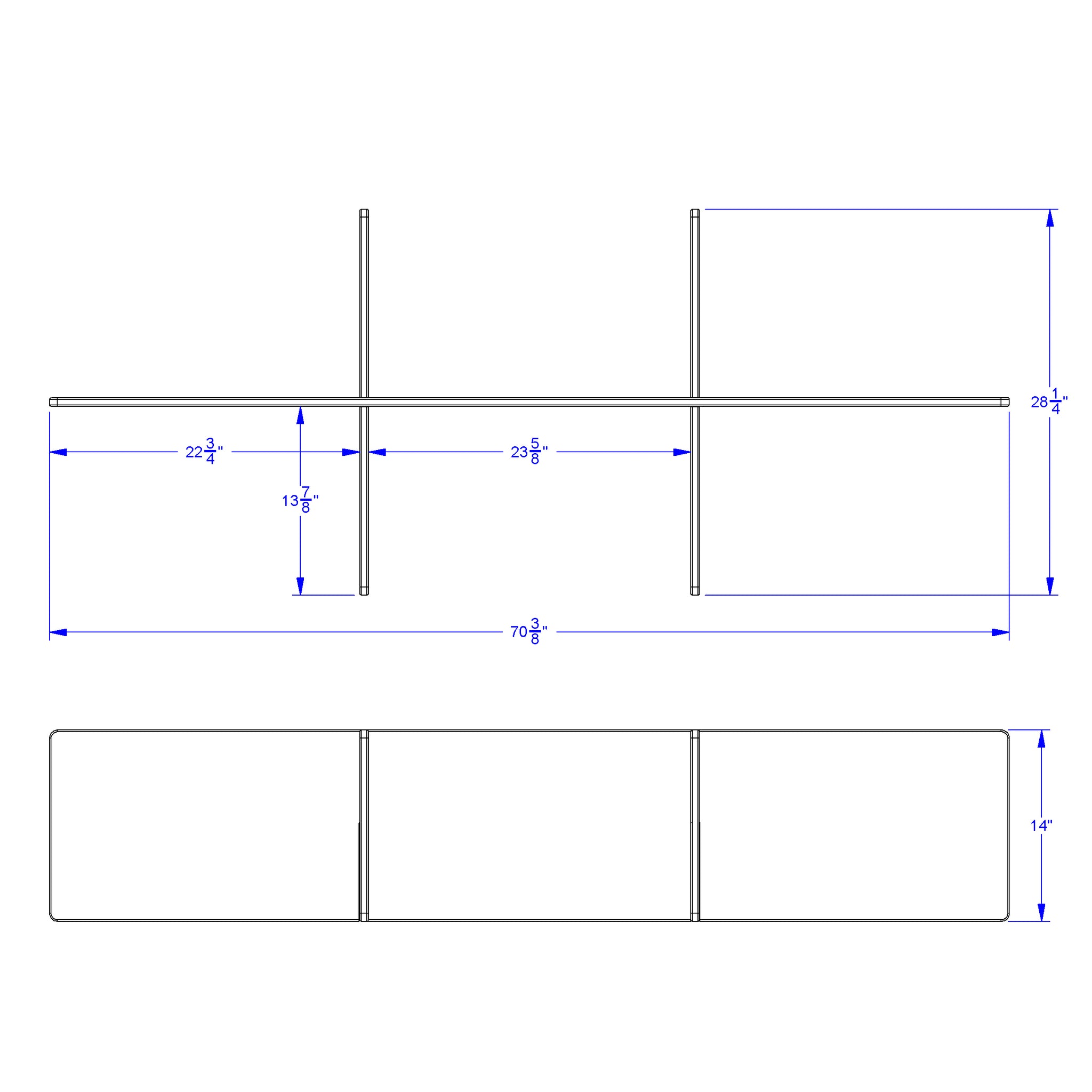Dimensions: 14" High x 70.5" Wide x 28.5" Deep