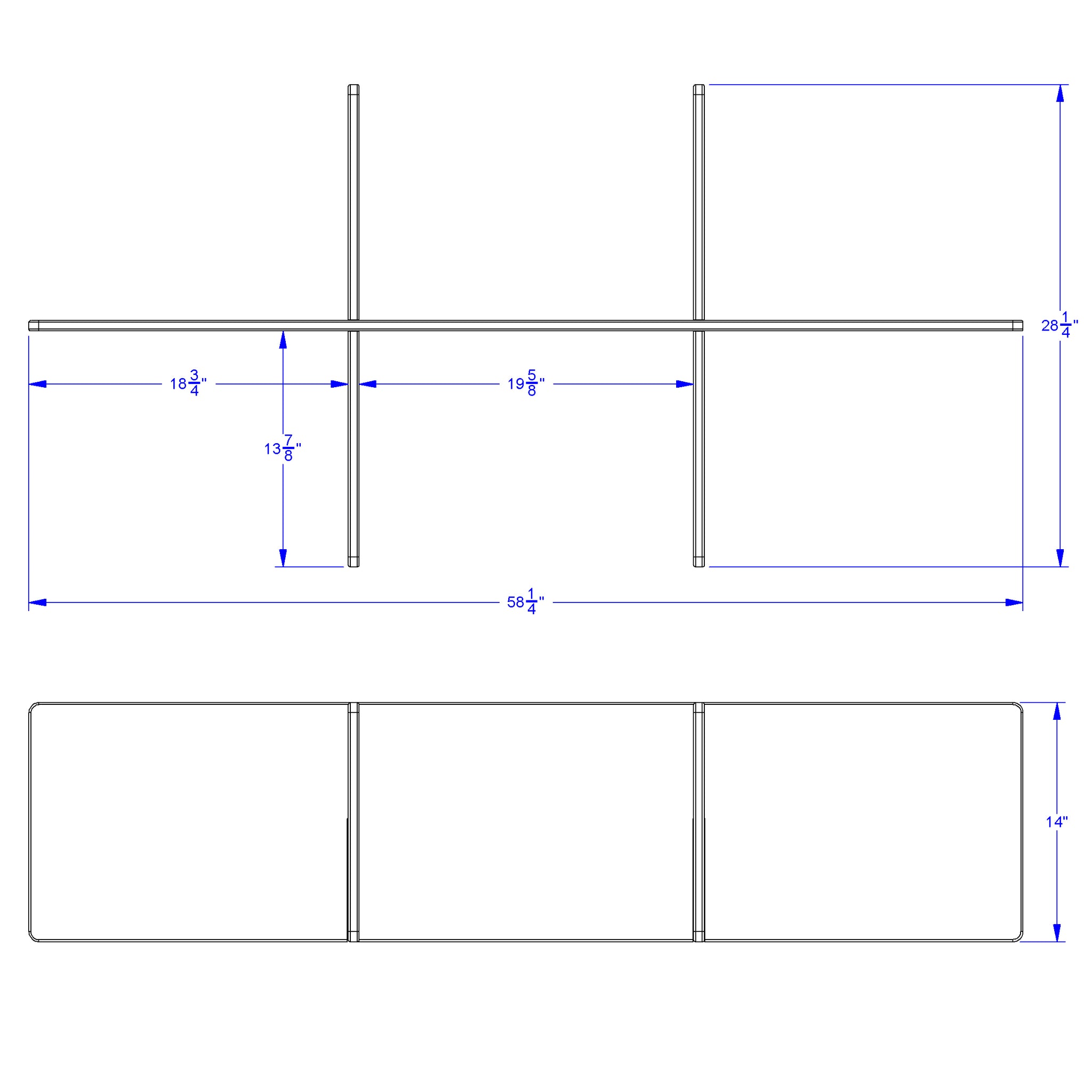 Dimensions: 14" High x 58.5" Wide x 28.5" Deep