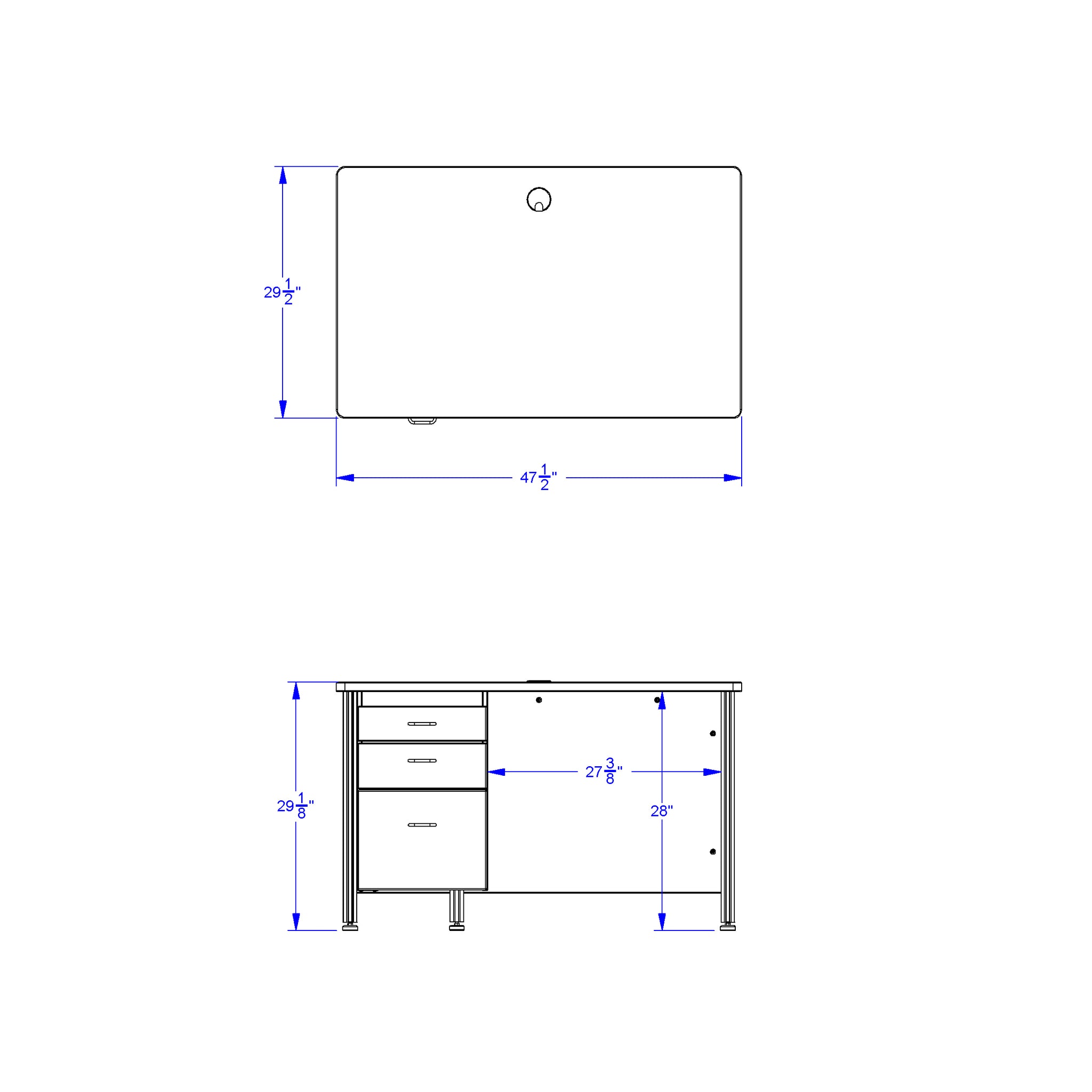 A desk made just for teachers! The single pedestal has two smaller drawers for smaller items and one high-sided bottom drawer for hanging files. Features a freckled gray laminate top with black TRUEdge®.