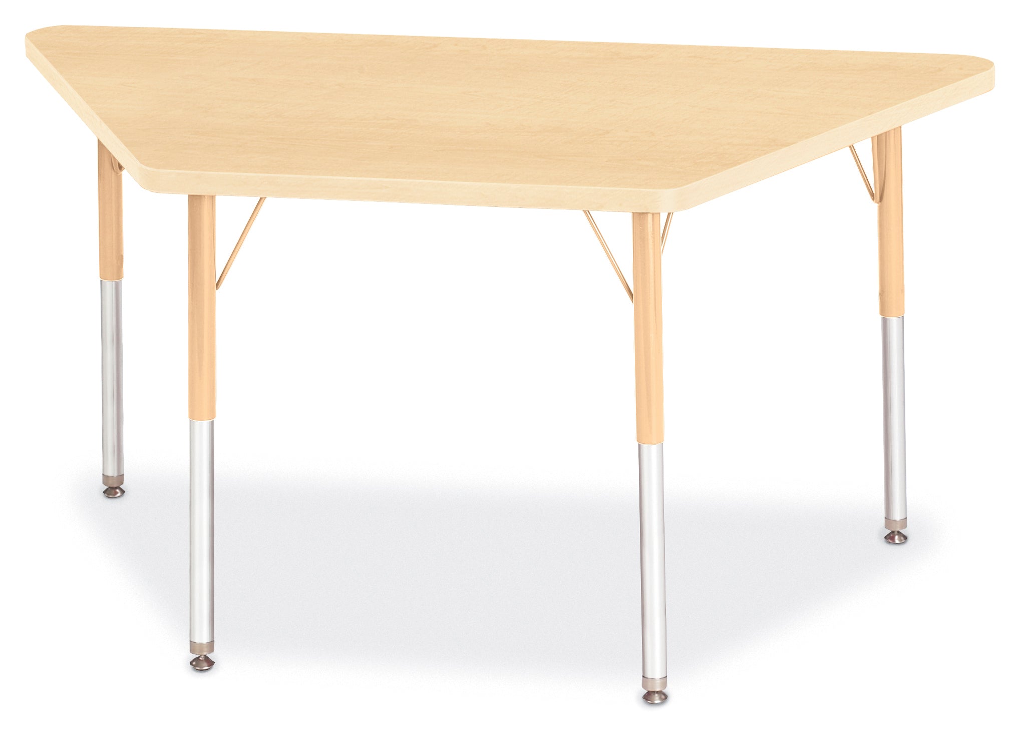Great for students of any age, multiple trapezoid tables can be arranged in many configurations to accommodate any space. Accommodates up to 2 chairs. The legs feature glides that reduce noise, prevent snags, and resist rust. Maple tabletop with maple TRUEdge and camel legs.