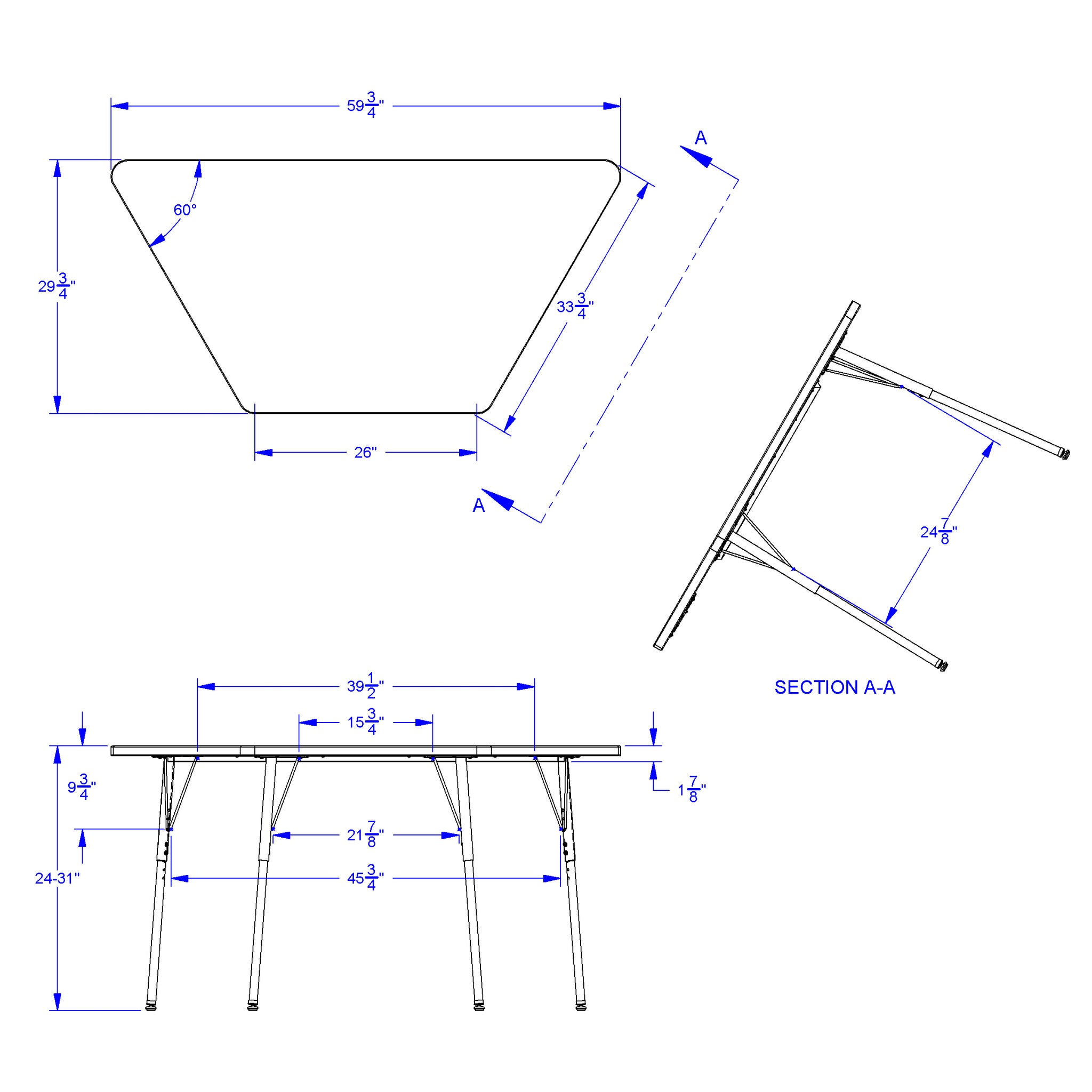 Great for students of any age, multiple trapezoid tables can be arranged in many configurations to accommodate any space. Accommodates up to 5 chairs. The legs feature glides that reduce noise, prevent snags, and resist rust. Freckled gray tabletop with teal TRUEdge and gray legs.