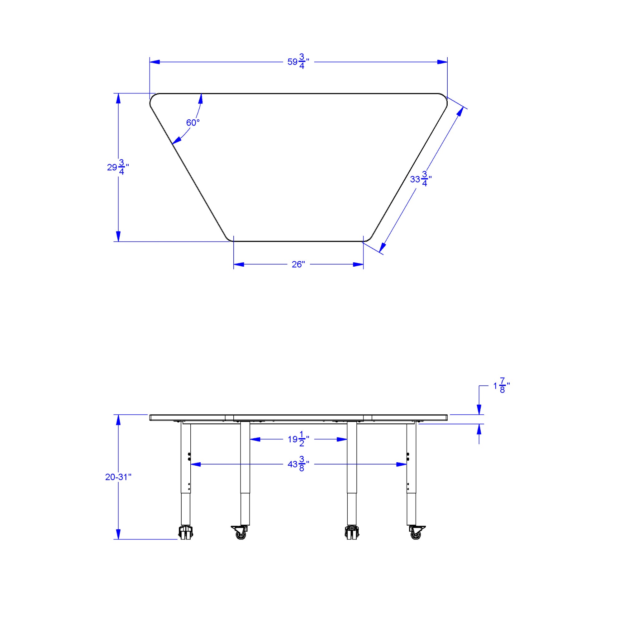 Great for students of any age, multiple trapezoid tables can be arranged in many configurations to accommodate any space. Accommodates up to 5 chairs. The legs adjust from 20” to 31” high, are 2” thick, and feature heavy-duty casters. Freckled gray tabletop with red TRUEdge, gray legs, and gray casters.