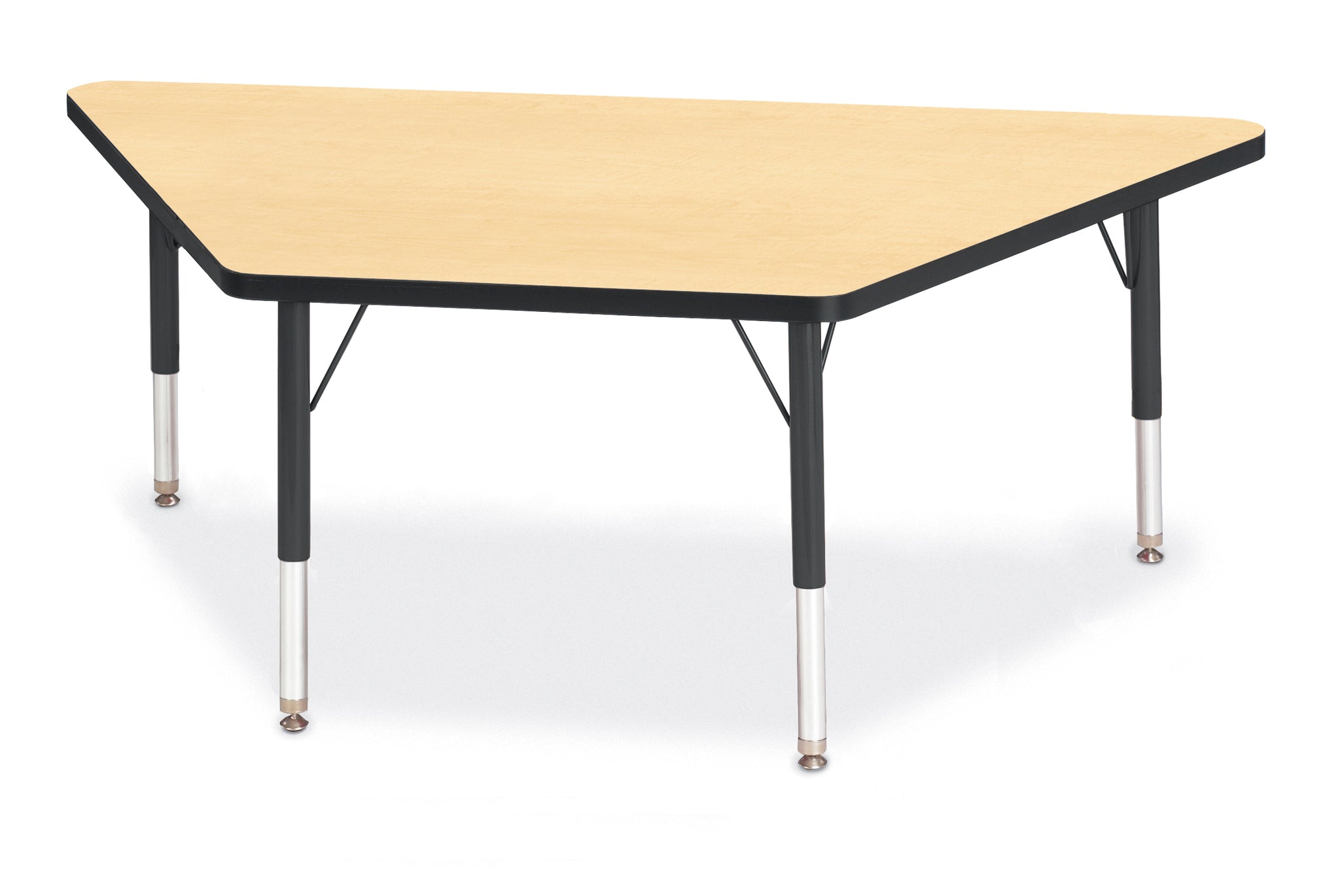 Great for students of any age, multiple trapezoid tables can be arranged in many configurations to accommodate any space. Accommodates up to 5 chairs. The legs feature glides that reduce noise, prevent snags, and resist rust. Maple tabletop with black TRUEdge and black legs.