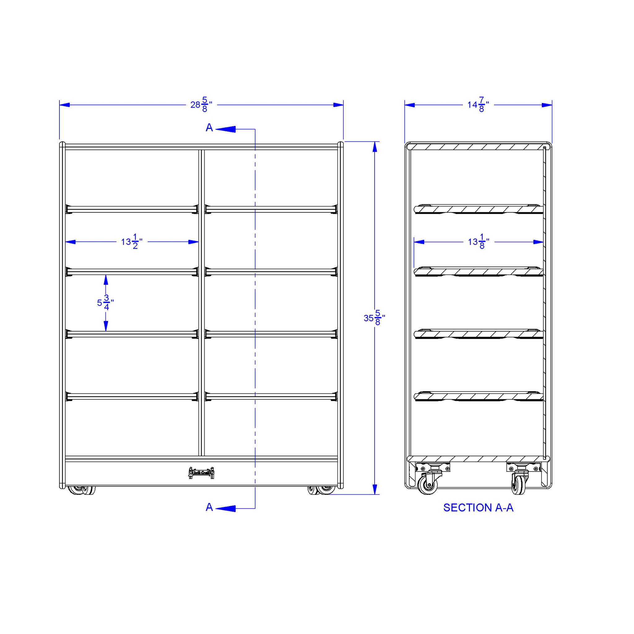 Exceptional mobile storage with ten tub openings. Letter sized papers lay flat without curling or bending.