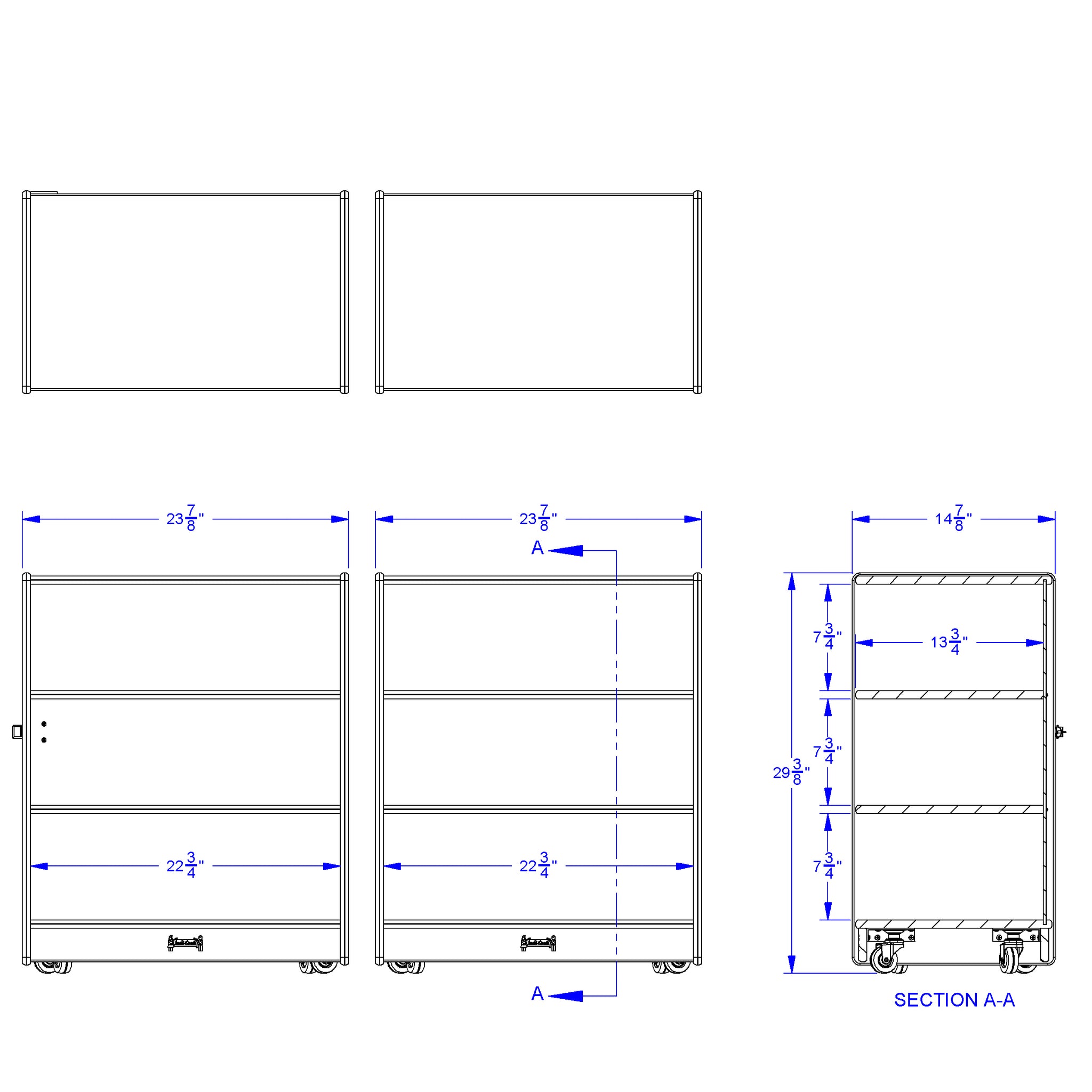 Classroom organization at everyone's fingertips. Wings can be "folded" and secured. Opens to eight feet. Center is 48" wide x 15" deep x 29.5" high. Wings are 24" wide.