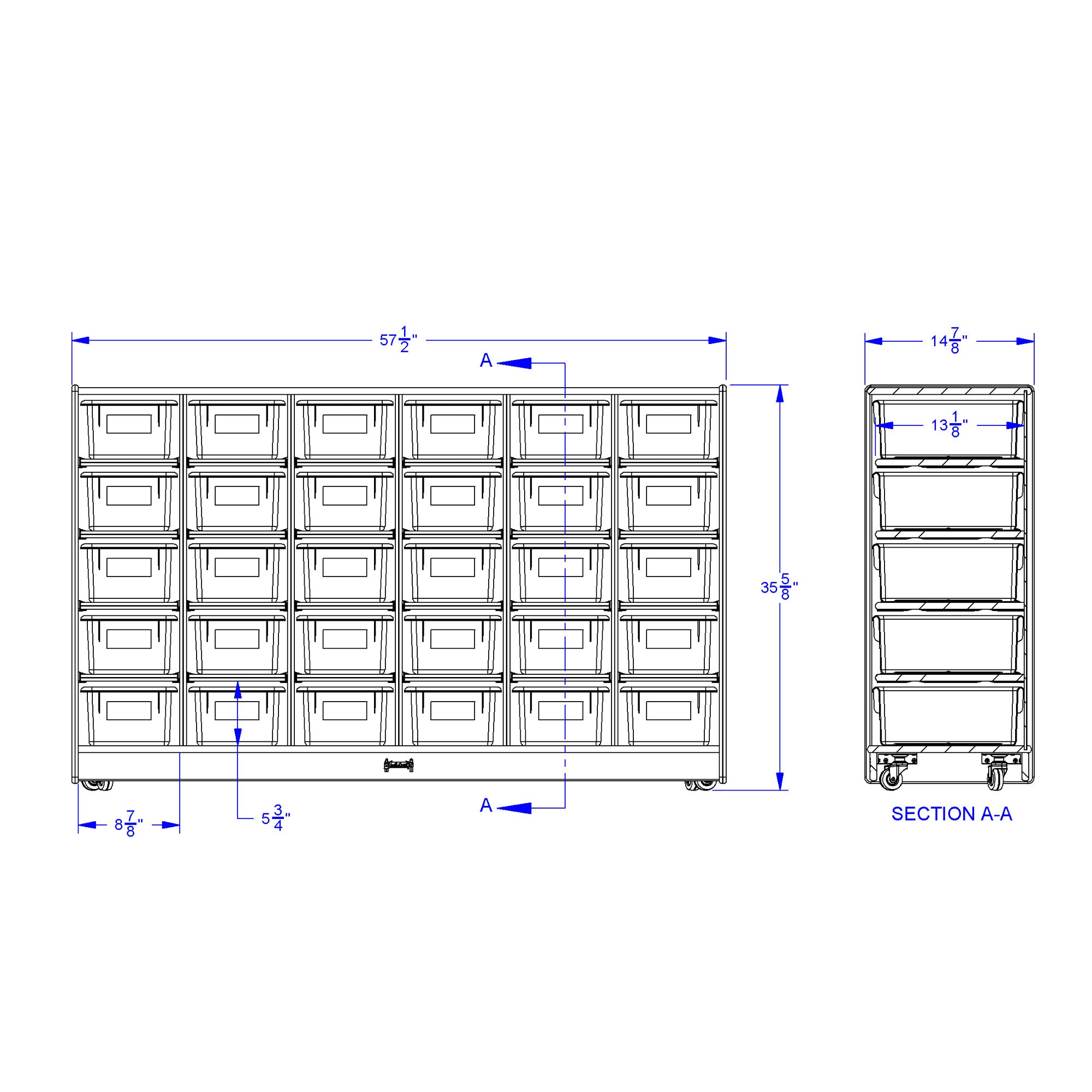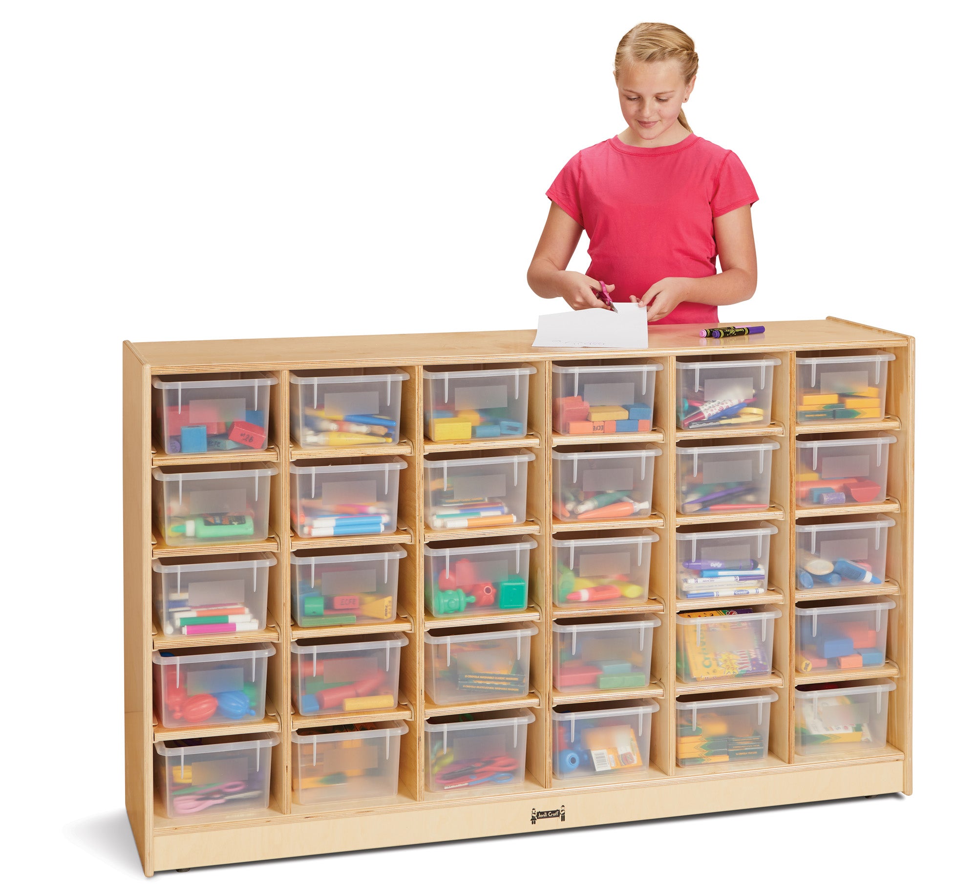 Maximum storage with thirty clear Cubbie-Trays for even the largest classroom.