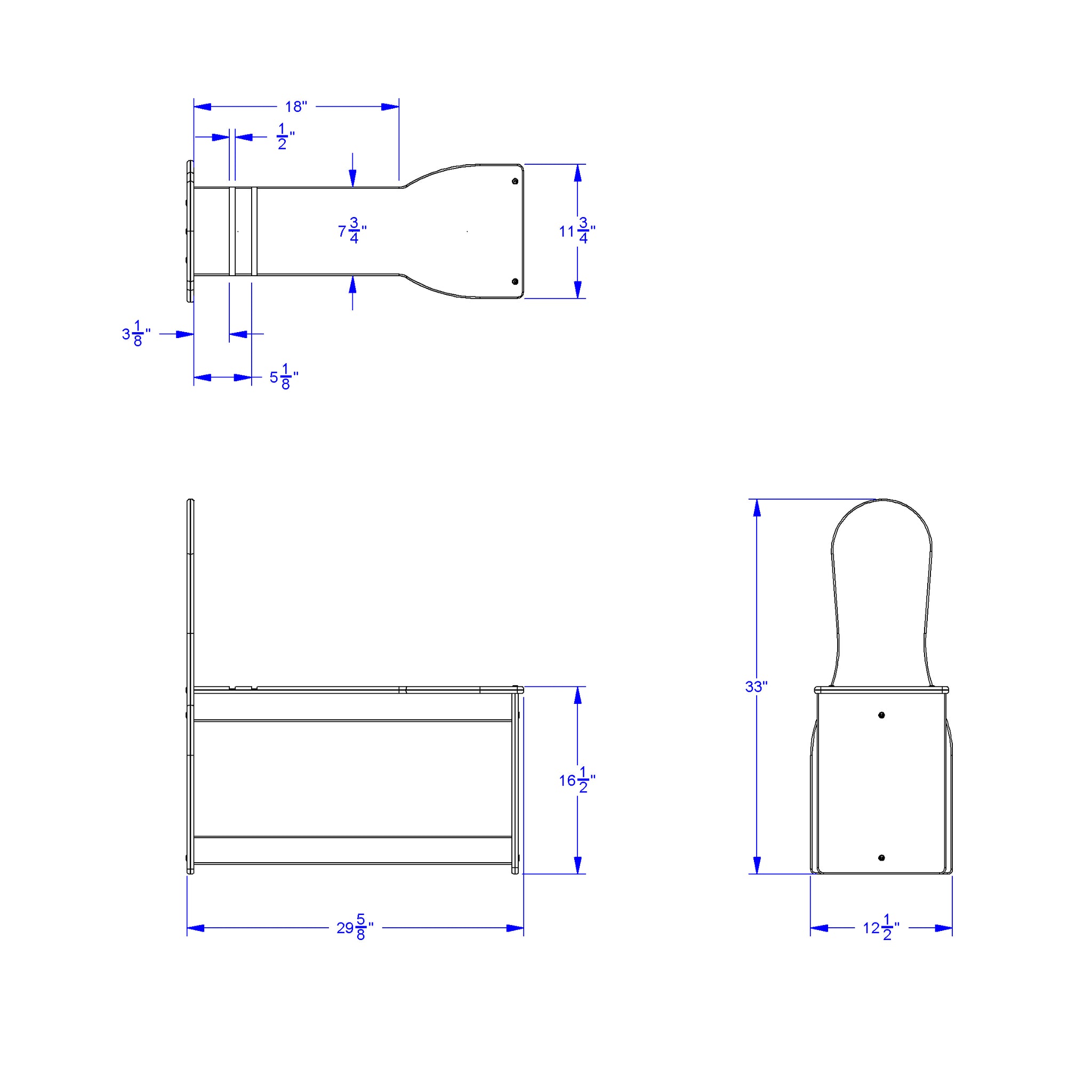 Dimensions: 33" High x 12" Wide x 29.5" Deep