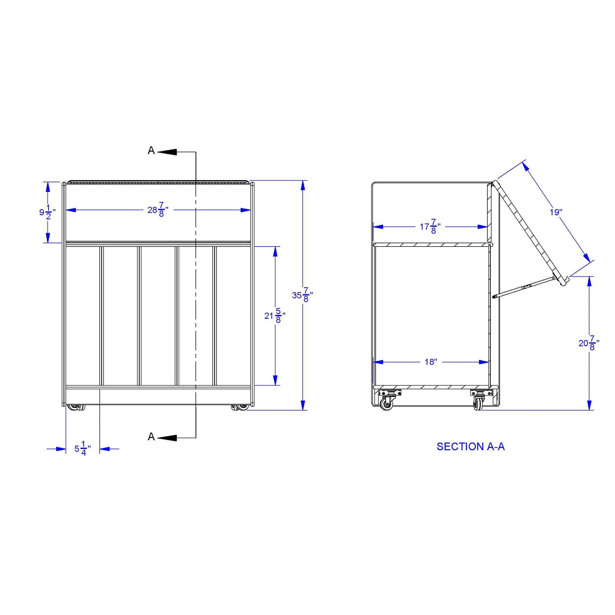 Mobile storage for big books, puppets and more. Write-n-Wipe folding easel to display big books. Caster mounted.