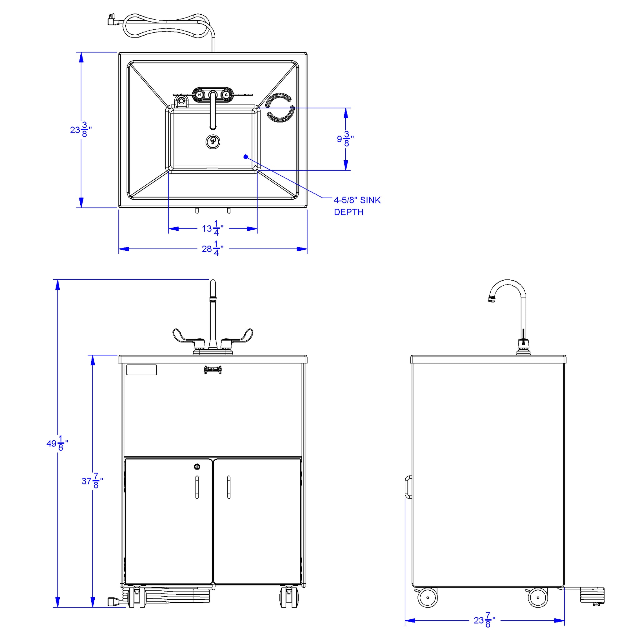 Set up a portable hand washing station without plumbing! Encourage hand washing habits and help keep everyone healthy while meeting licensing requirements. The 38" counter height is perfect for adults or older children with the help of a Step-Up Stool. The water pump has a flow rate of up to half a gallon per minute. The tank for the non-potable clean water holds five gallons while the waste water tank holds six gallons. There is a catch tray under the tanks. Mistake-proof connectors means the clean and waste water tanks cannot be inadvertently switched. Plastic sink is approximately 5" deep. Power switch inside the cabinet and openings for cord management. Based on washing hands for about 20 seconds, each tank provides 40-50 handwashes. Mobile tank cart and filler hose with funnel available separately in Accessories Kit. ONLY AVAILABLE IN UNITED STATES. *Does not have hot water.
