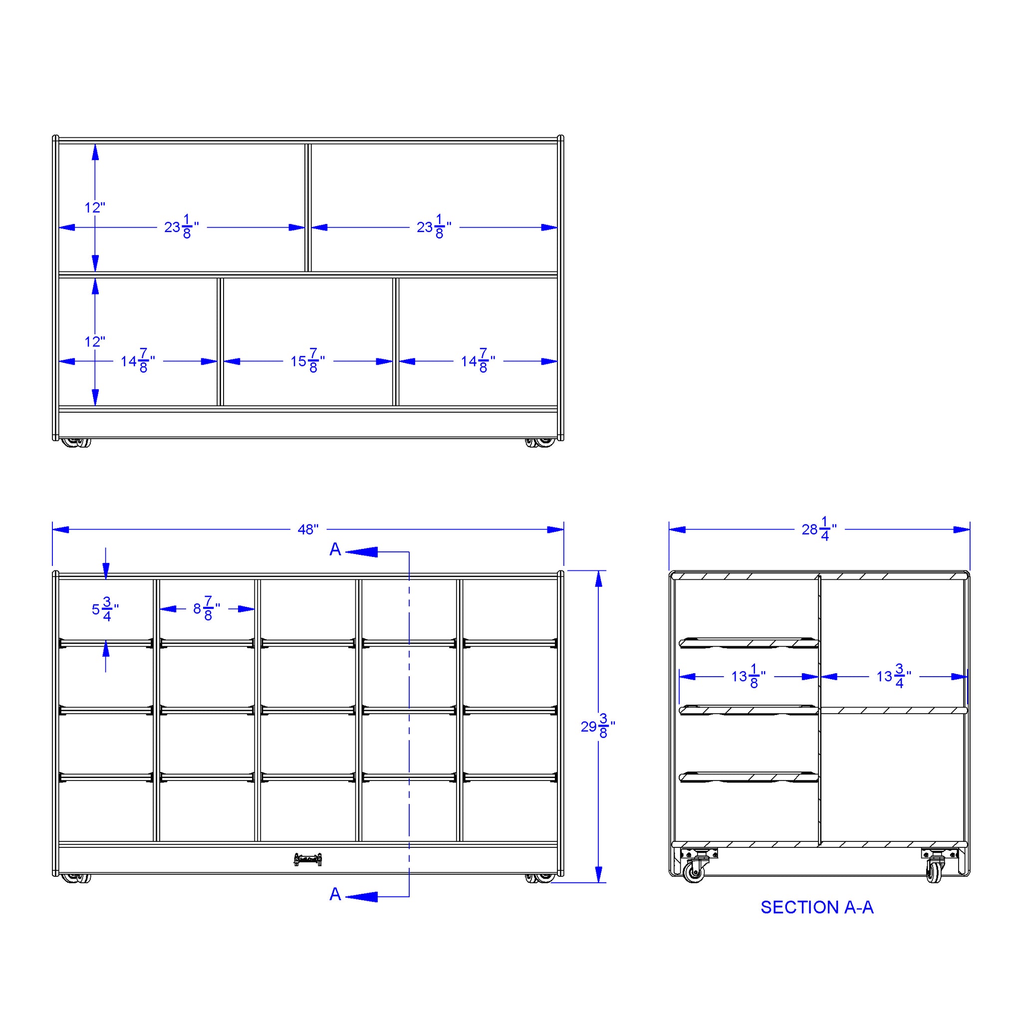 Maximize storage and organize any space with back-to-back mobile storage. Perfect for rooms with limited space! Top surface provided functional space as well!