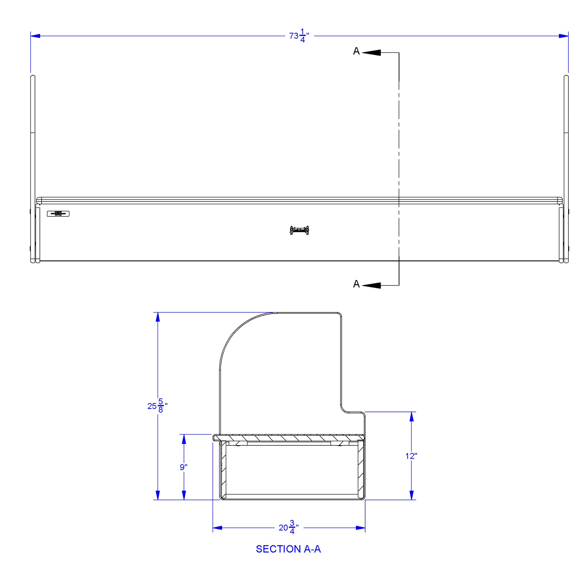 Dimensions: 25.5" High x 73.5" Wide x 21" Deep