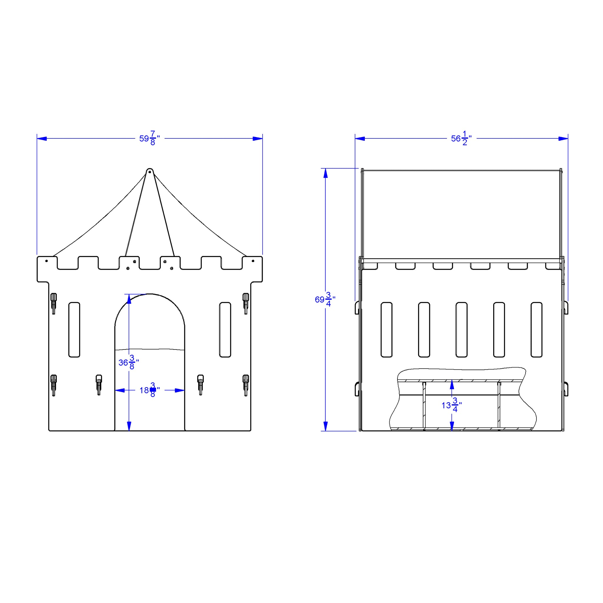 Deluxe features create a reading and dramatic play space fit for royalty. Meets ECER-R, Space for Privacy standards. Two benches inside provide storage underneath and rear "window" can be used as a puppet theater with the included red curtains. The airy yellow canopy allows light inside. Walls and benches easily interlock for a very sturdy structure.