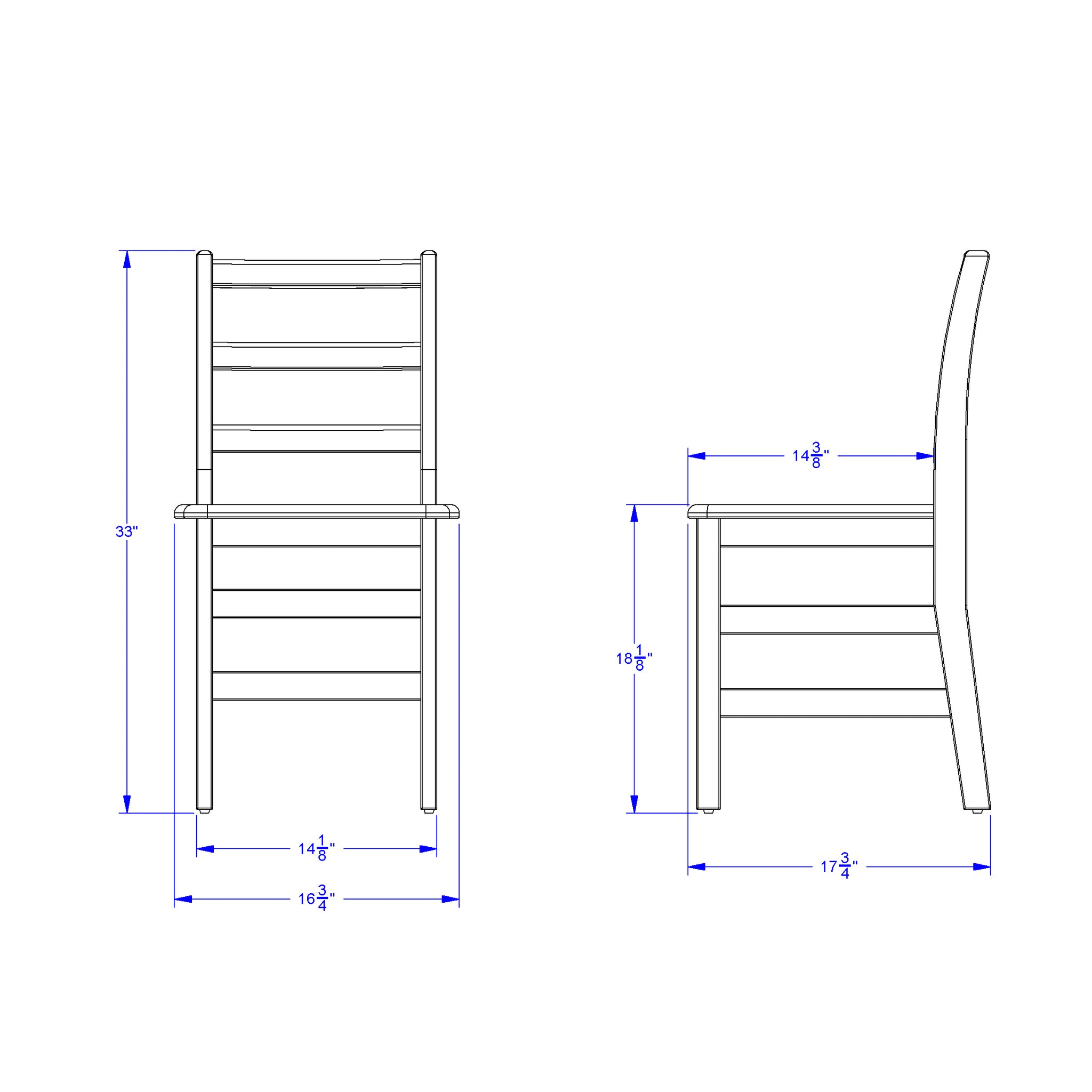 Encourage good posture with these solid Ladderback chairs. Rails are properly spaced for child safety. Hard rubber feet reduce noise and prevent scratching.