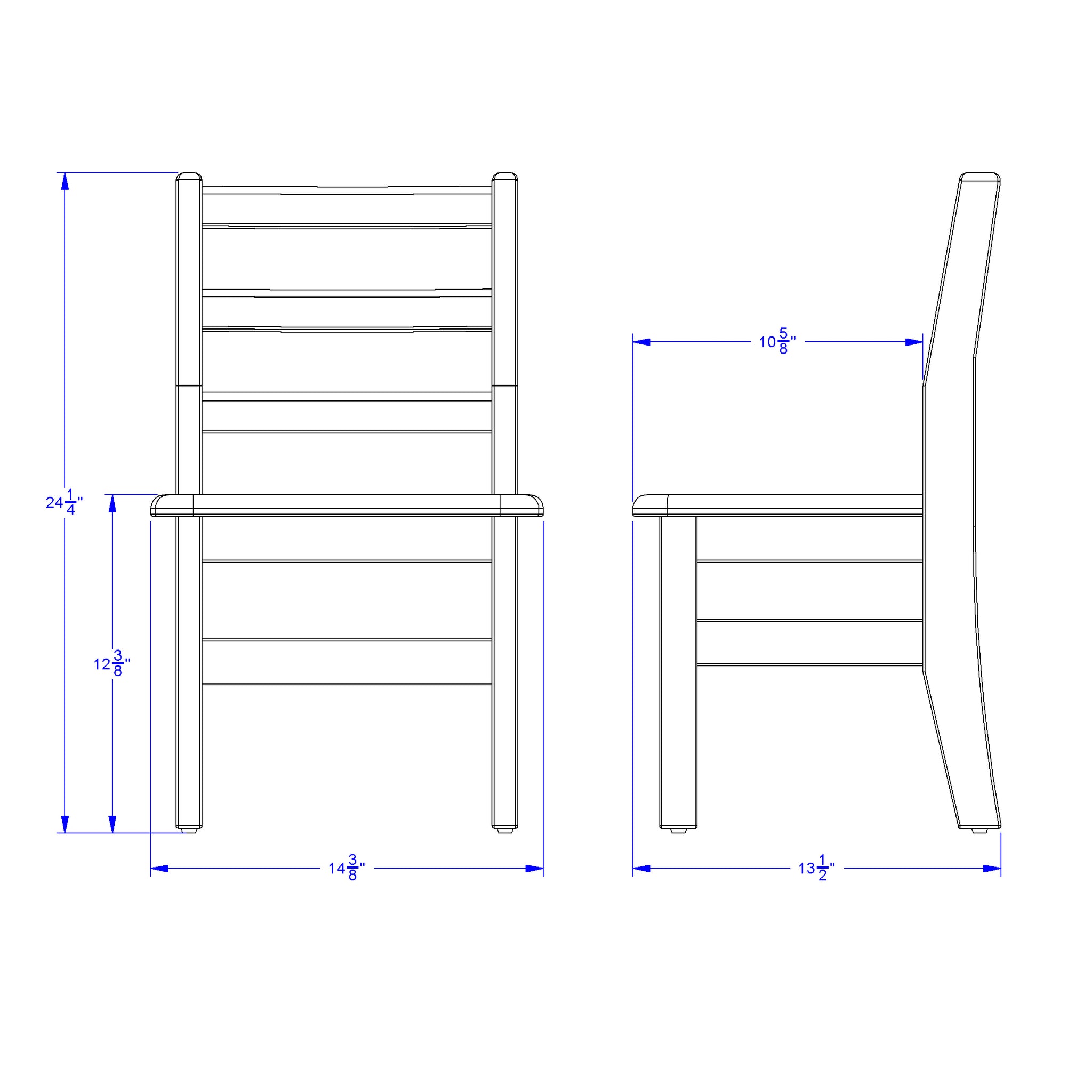 Encourage good posture with these solid Ladderback chairs. Rails are properly spaced for child safety. Hard rubber feet reduce noise and prevent scratching. Contains two 12" chairs.