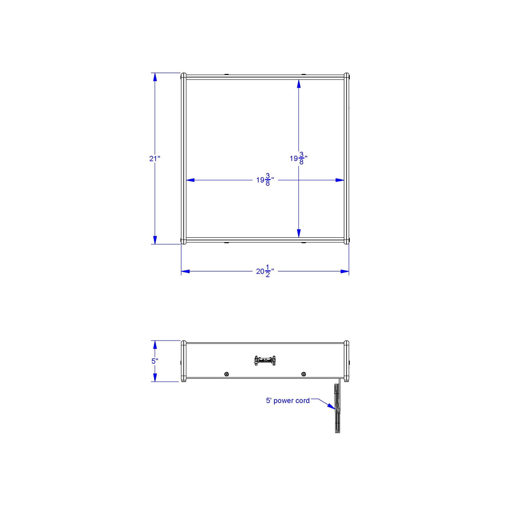 Dimensions: 5" High x 20.5" Wide x 21" Deep