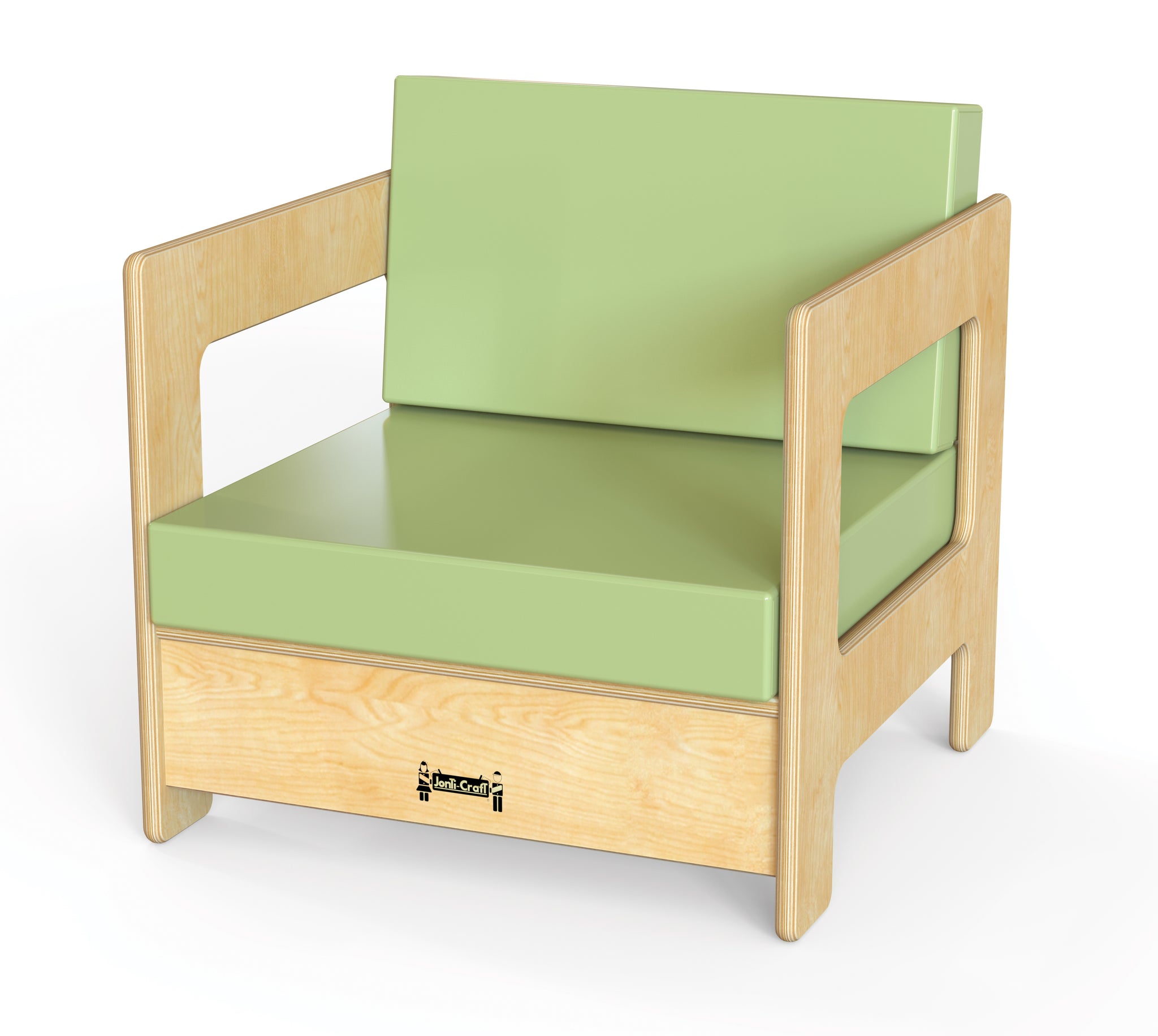 KYDZSized chair for dramatic play areas and reading nooks. Baltic Birch framing and comfortable key lime green cushions make reading fun!