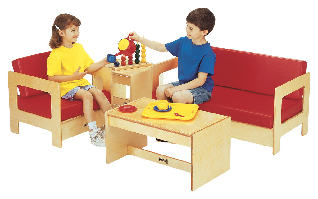 KYDZSized chair for dramatic play areas and reading nooks. Baltic Birch framing and comfortable red cushions make reading fun!