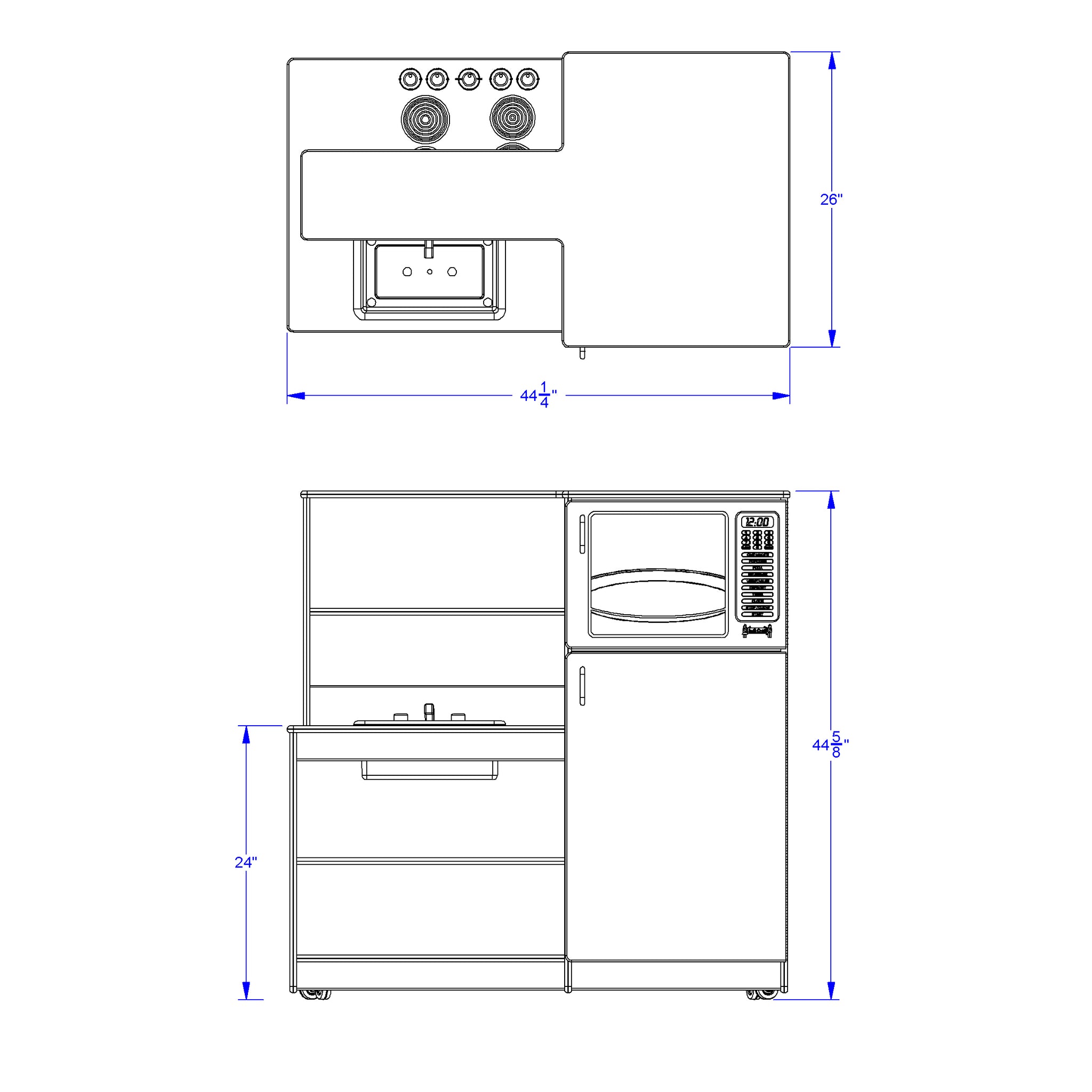 All the favorite kitchen appliances partnered into one double-sided mobile island. Realistic features like the four "burner" stove, ice-maker, wooden turn-button controls, and button display make pretend play more fun. Counter is 23.5" high.
