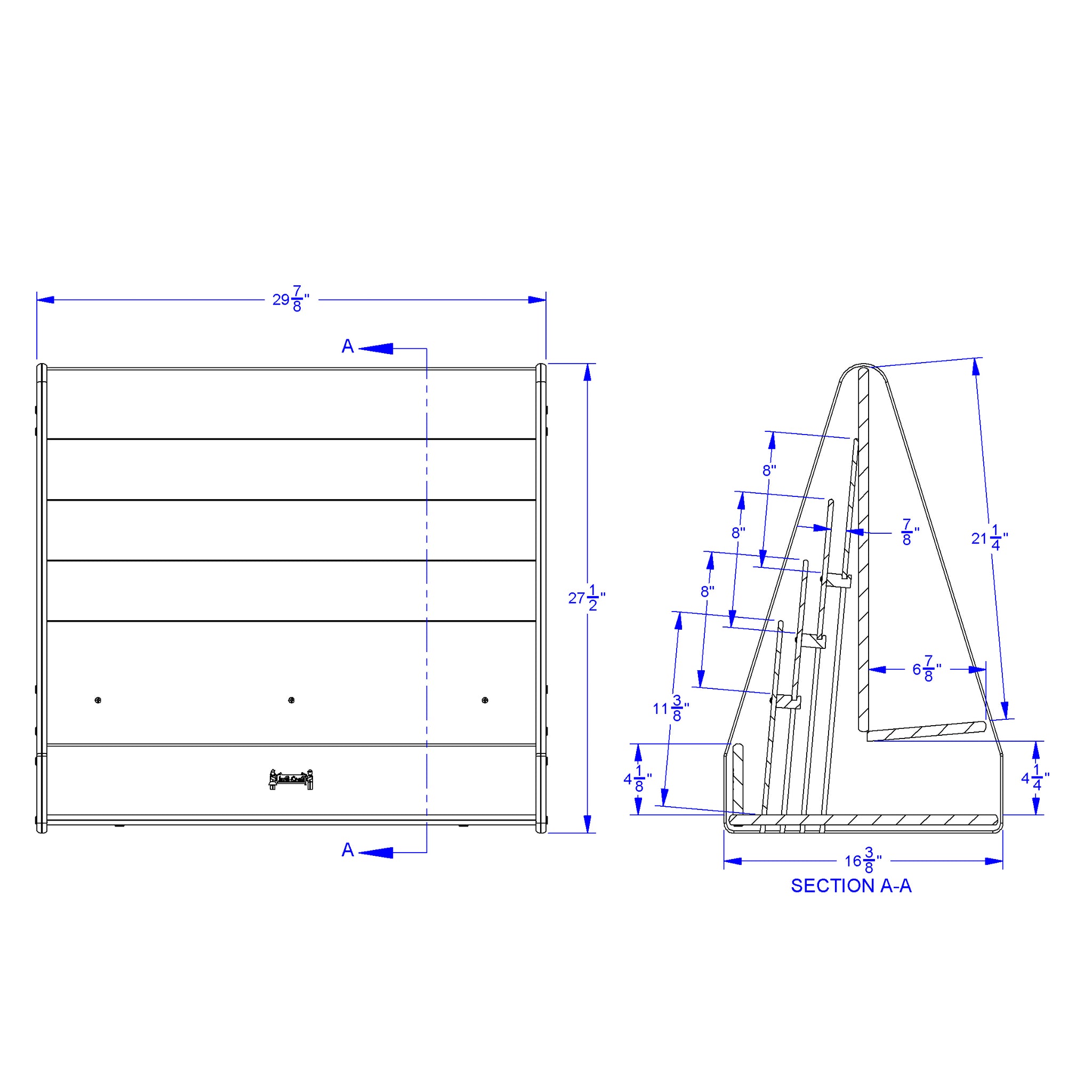 Plenty of display area with four shelves. Approximately 1" shelf depth.