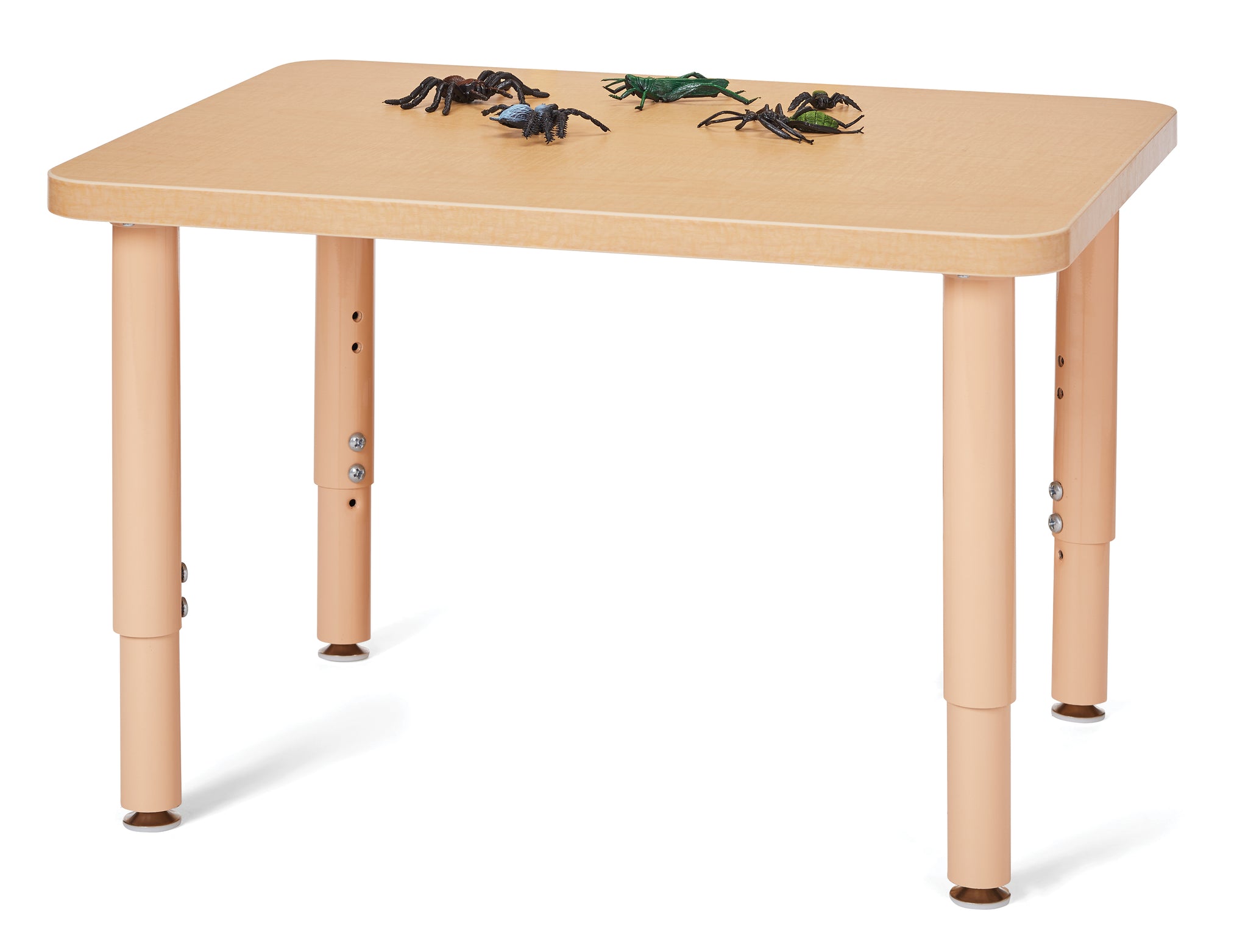 The perfect place for so many purposes including learning, art, play - plus more! You can even add to your dramatic play area to create a place for children to “dine”. It features adjustable legs with leveler glides making it just the right height for any early learning age. Create a variety of table setups by combining it with our Purpose+ Trapezoid Tables. The Maple laminate tops with Maple TRUEdge® create a seamless, natural look while providing durability.