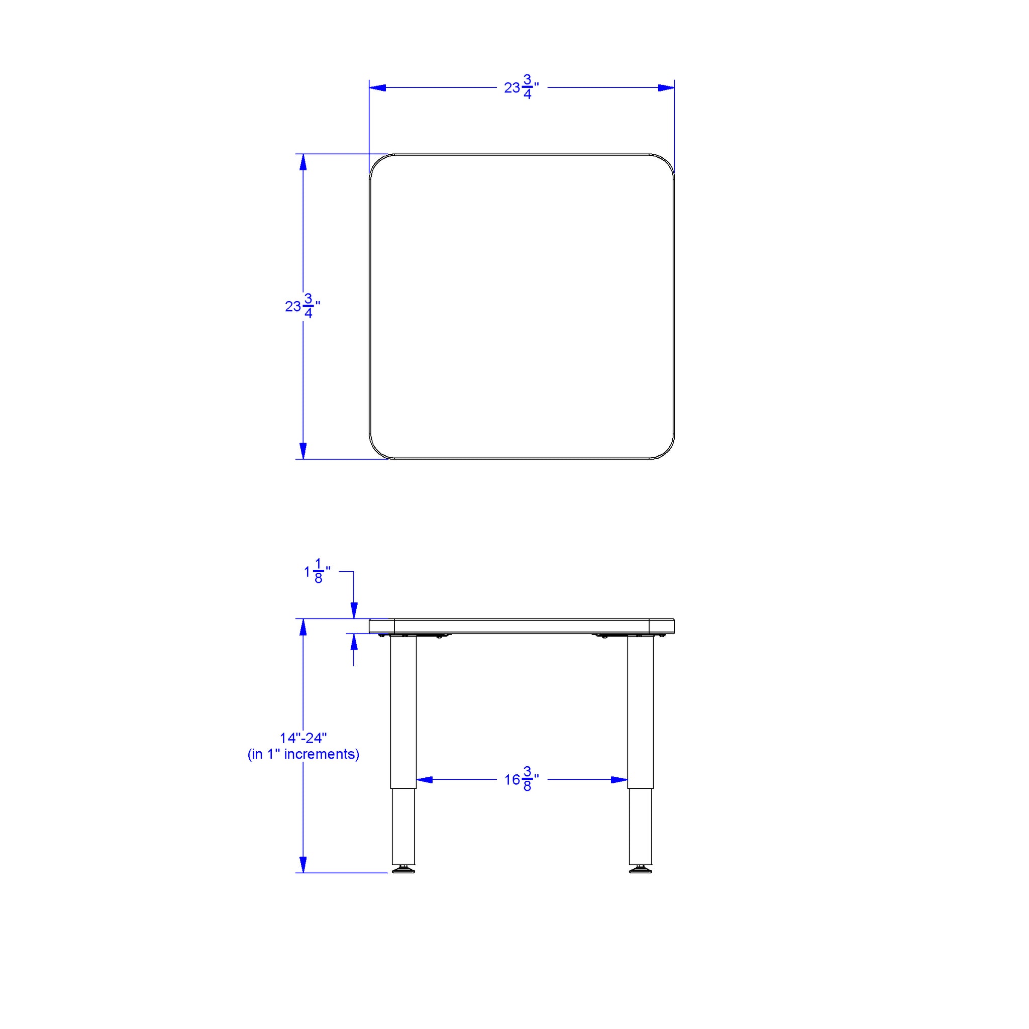 Dimensions: 14-24" High x 24" Wide x 24" Deep