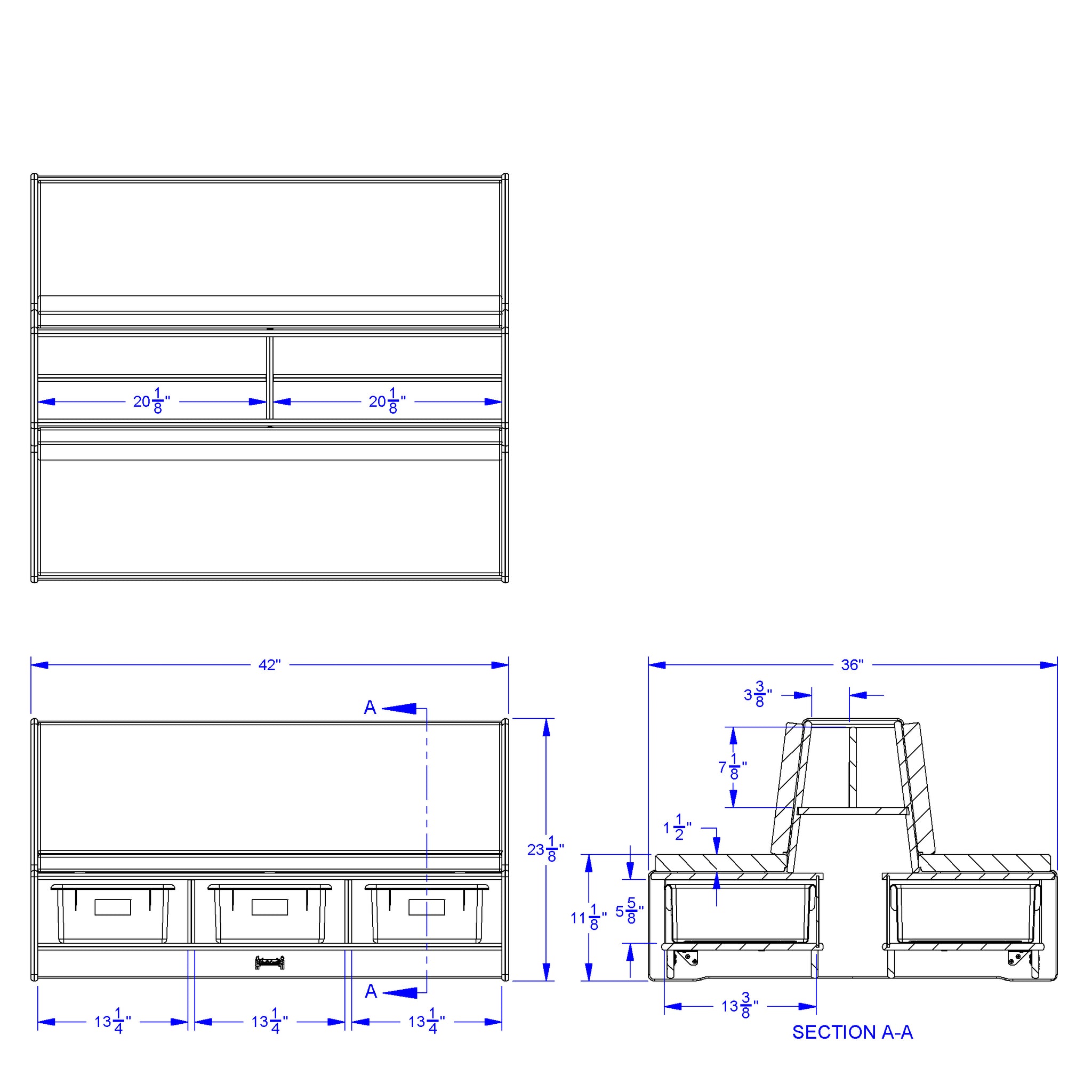 Young readers can nestle with their favorite stories on this two-sided couch. Seat is 11" high. Center partitions keep books close at hand to encourage reading. Six clear tubs included. Cushions available in red or blue.