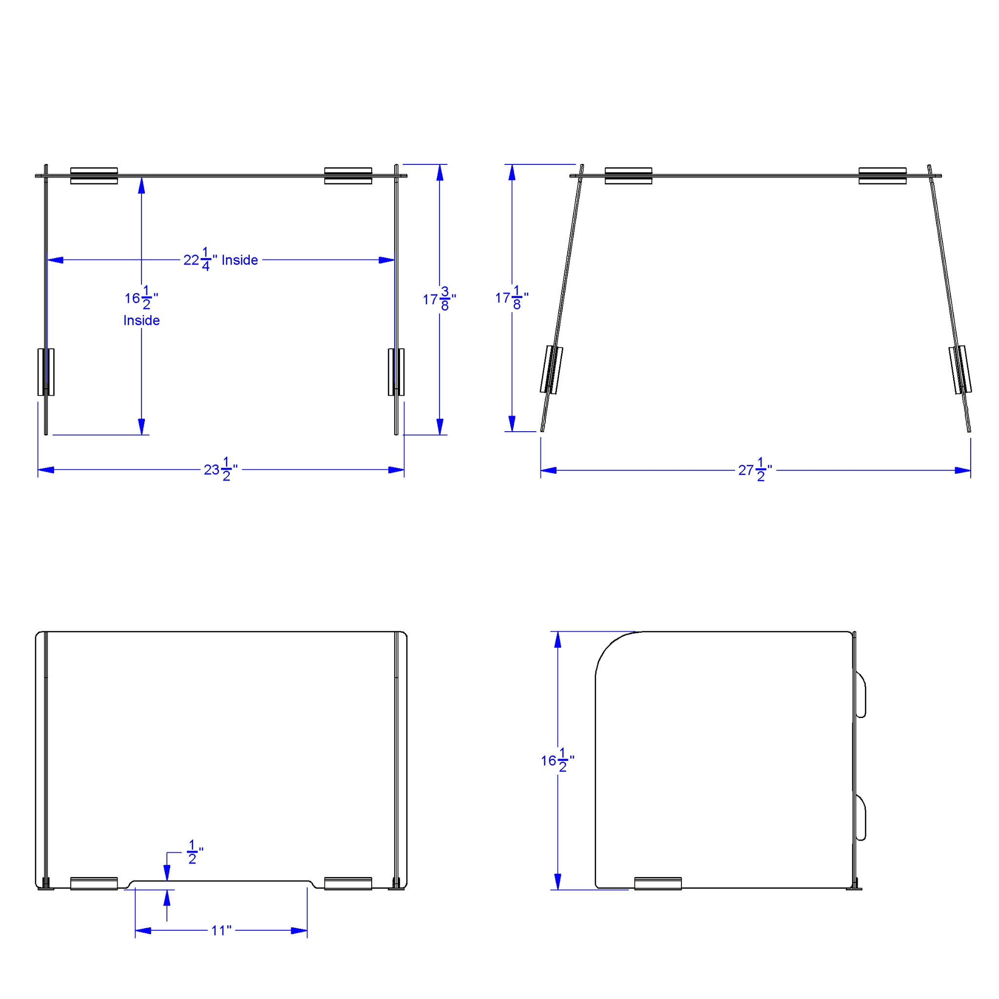 Keep students and employees protected with this 16.5” high Desktop Shield. Featuring three sides of see-thru acrylic for maximum safety and visibility. The front panel features an 11” wide x .5” high opening at the bottom to slide papers and other small items back and forth. The hook cutouts on the side panels easily slide into slots on the front panel for quick assembly and the included four fasteners have adhesive bottoms to keep shields in place and prevent them from sliding. The side panels can be splayed out to the sides to an opening of approximately 27˝" to give children more room if desired. No tools needed for assembly. Fasteners are not reusable and additional fasteners can be purchased separately. Warning - Adult Assembly Required.