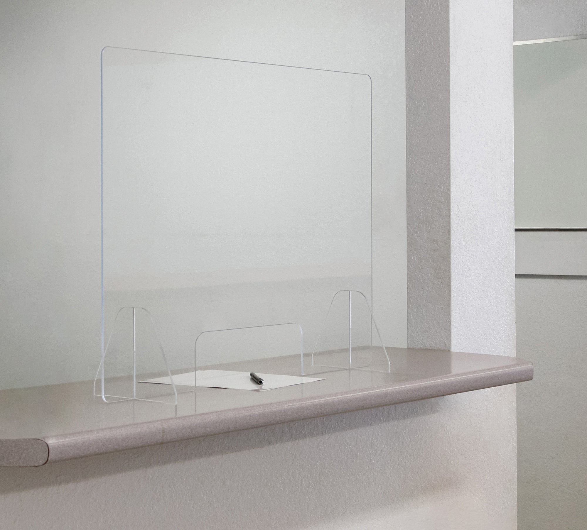 This see-thru table divider helps enforce social distancing and physical separation while allowing excellent visibility. The divider makes it easy to partition a table or worktop into two separate areas and features a open slot for passing papers and other materials from one side to the other. The see-thru acrylic is easy to clean with soap and water and does not require installation to the tabletop - simply move and reposition to the area of need. Divider ships flat. Not only perfect for separating students in educational environments, but also great for restaurants, clients, and employees in commercial areas.