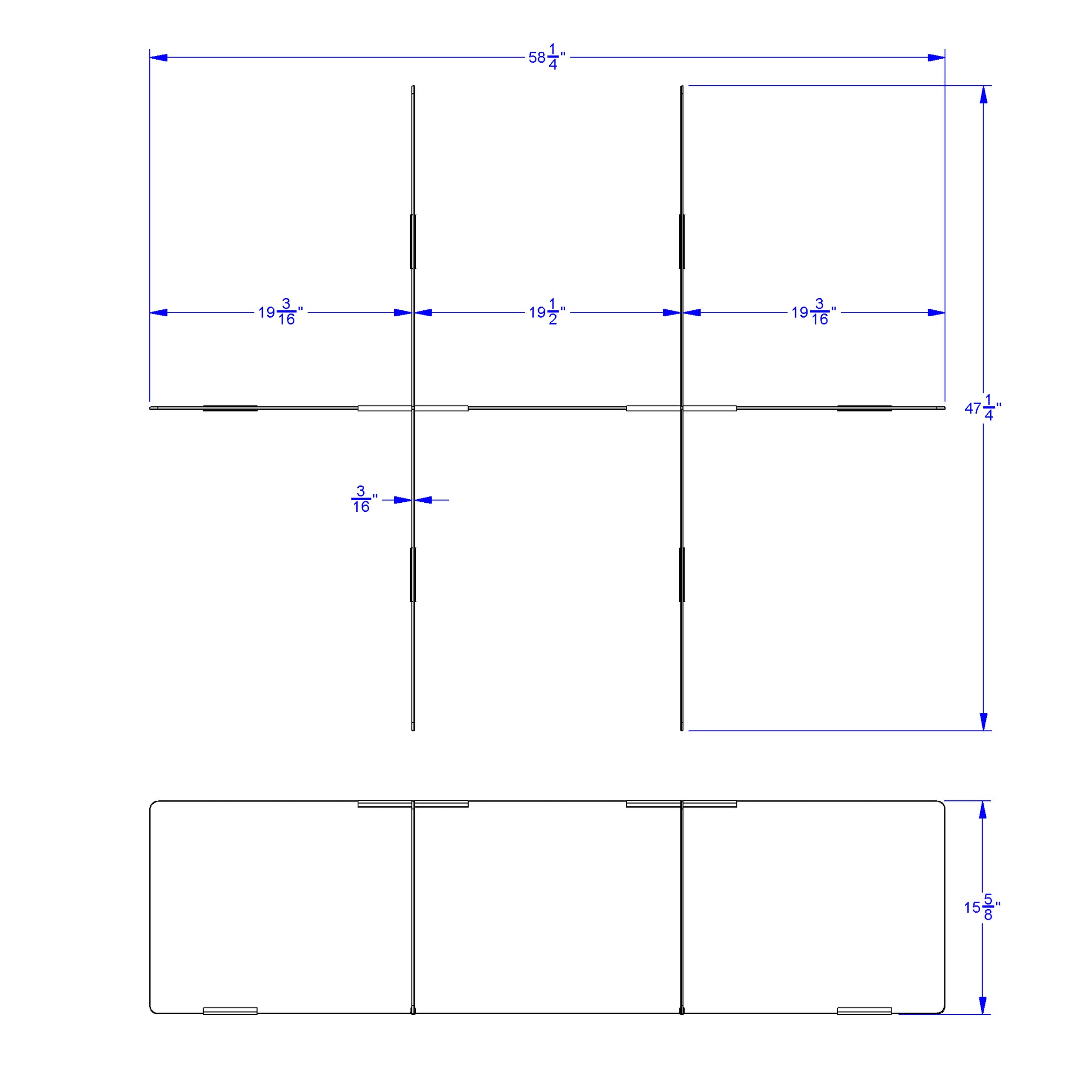 Dimensions: 16" High x 58.5" Wide x 47.5" Deep