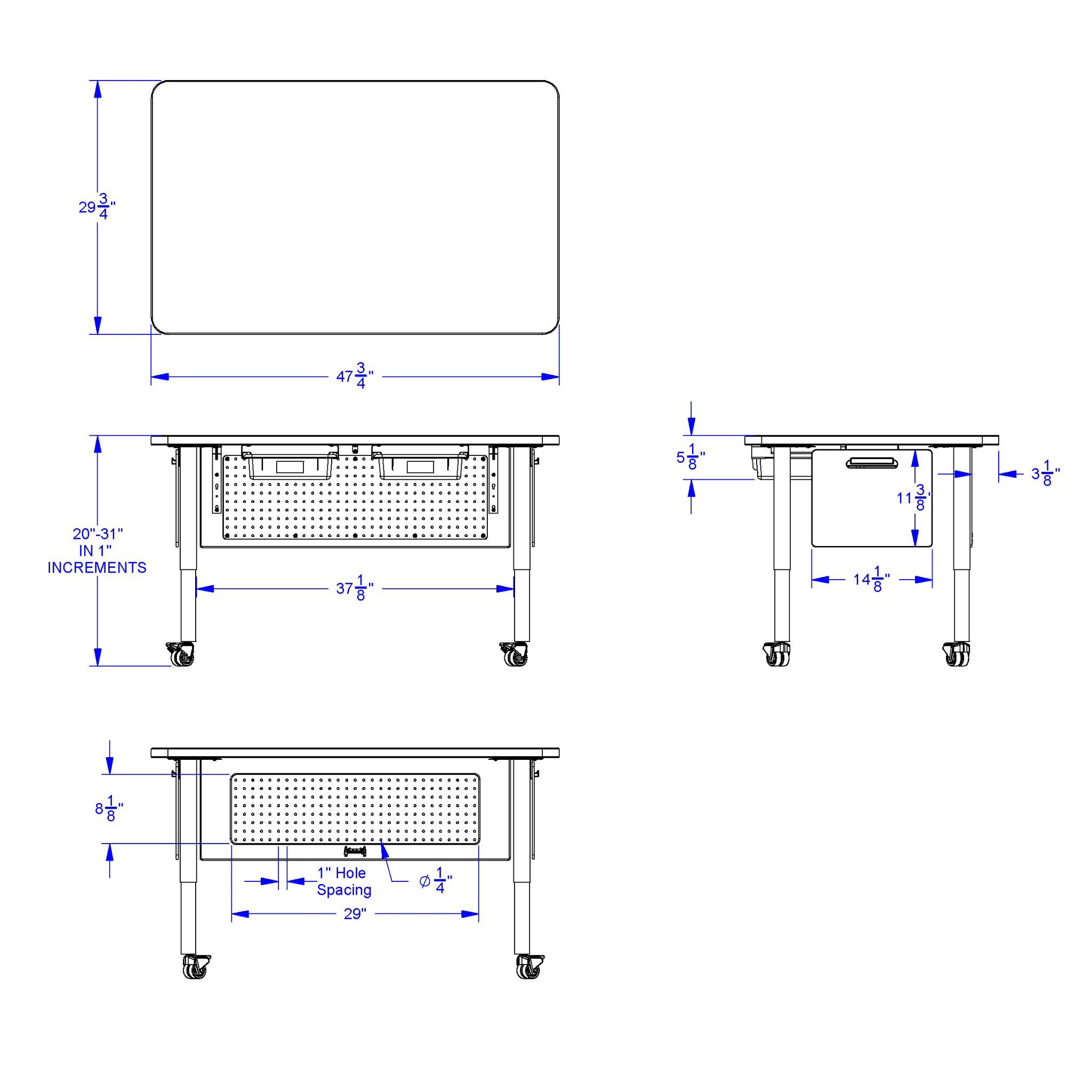 Dimensions: 20-31" High x 48" Wide x 30" Deep