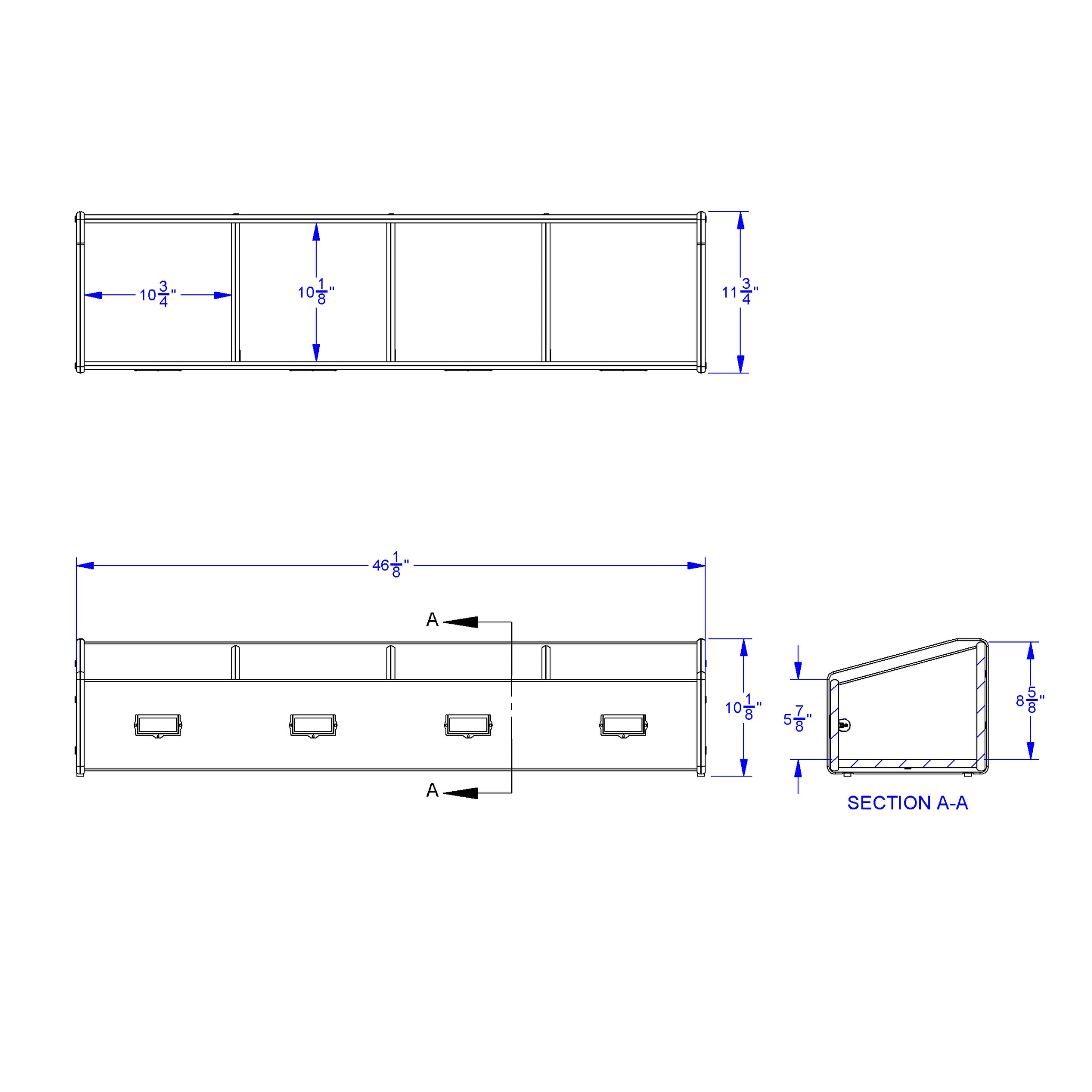 Dimensions: 10.5" High x 46.5" Wide x 12" Deep