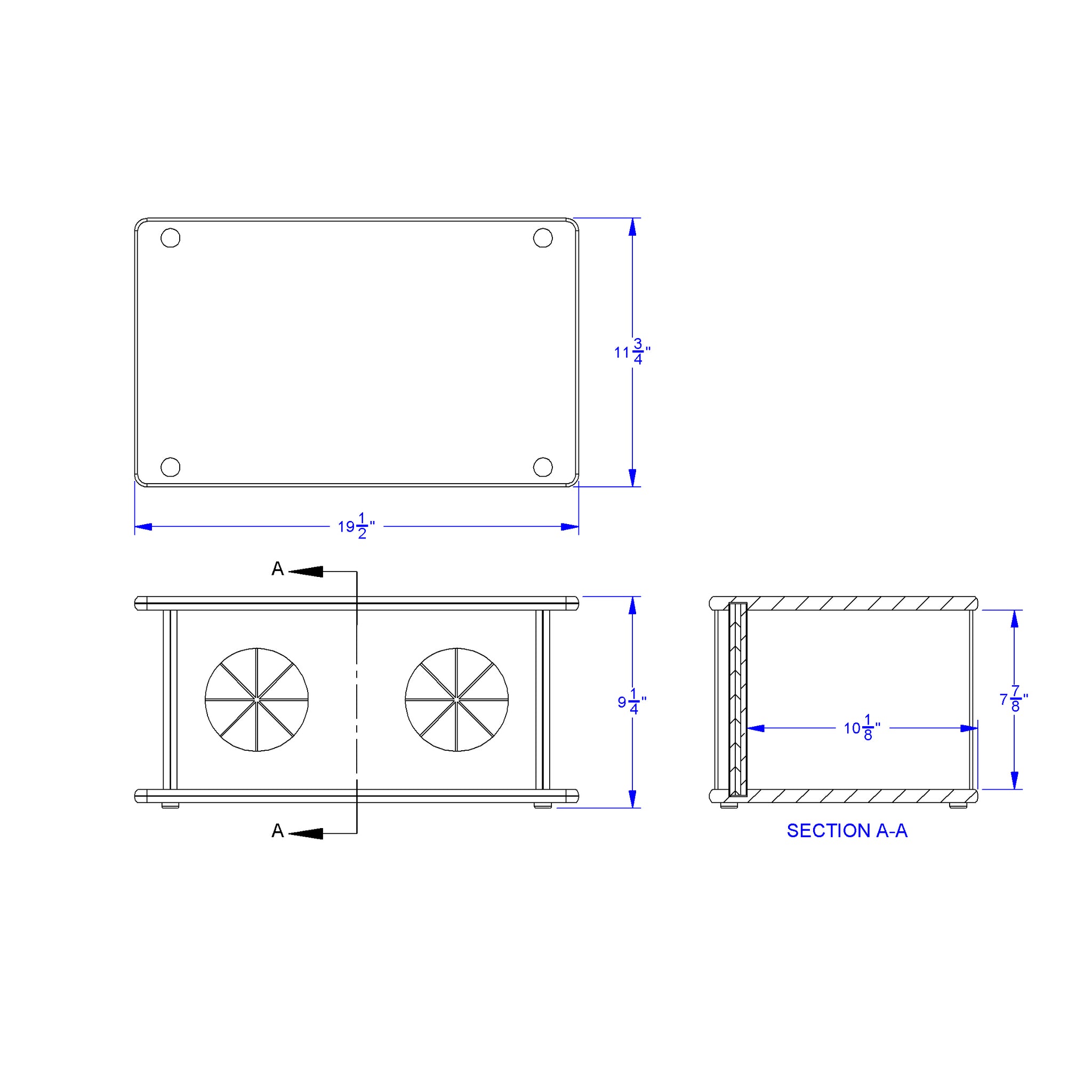 Dimensions: 9.5" High x 19.5" Wide x 12" Deep