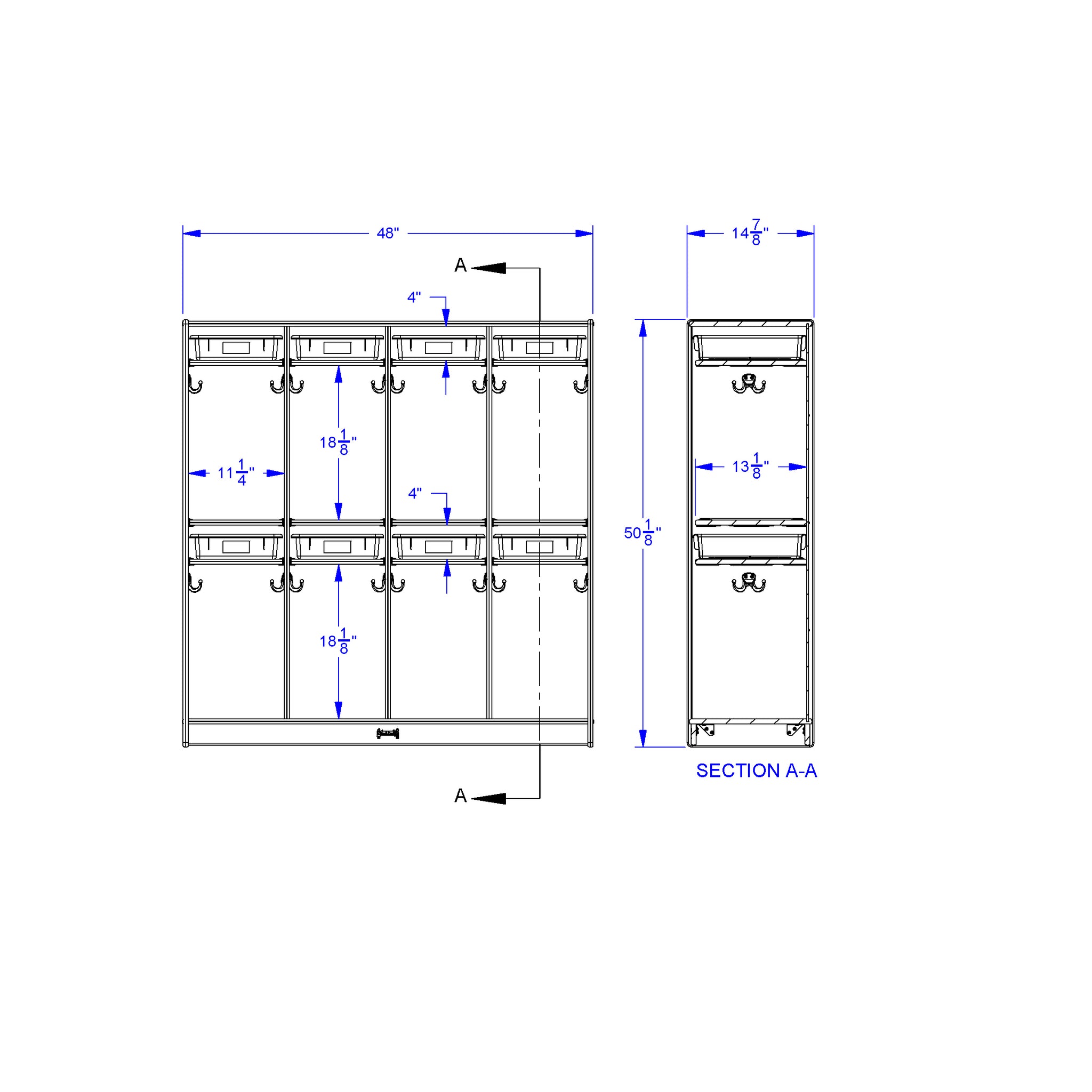 Keep entrances neat and tidy while helping kids organize their take home items with this eight-section locker. Each section features a colored Paper-Tray—perfect for organizing homework and keep smaller items contained—and two double-hooks for hanging book bags, jackets, and more.