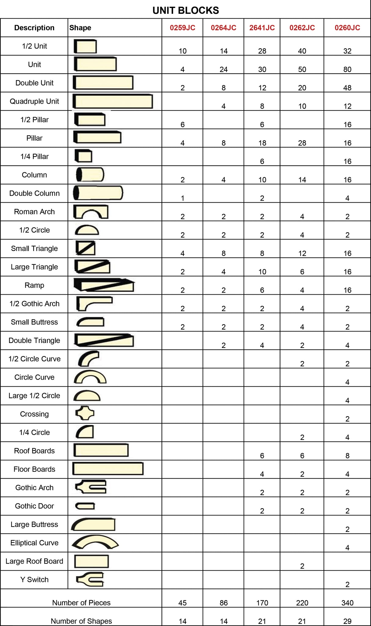 Kids enjoy hours of creative play with these time-honored classroom favorite unit blocks. Crafted from hardwood, which is stronger than oak, each block is finely sanded smooth to insure it will be splinter-free. All edges are beveled and corners are safely rounded. This classically designed block set contains 340 Pieces and 29 Shapes.