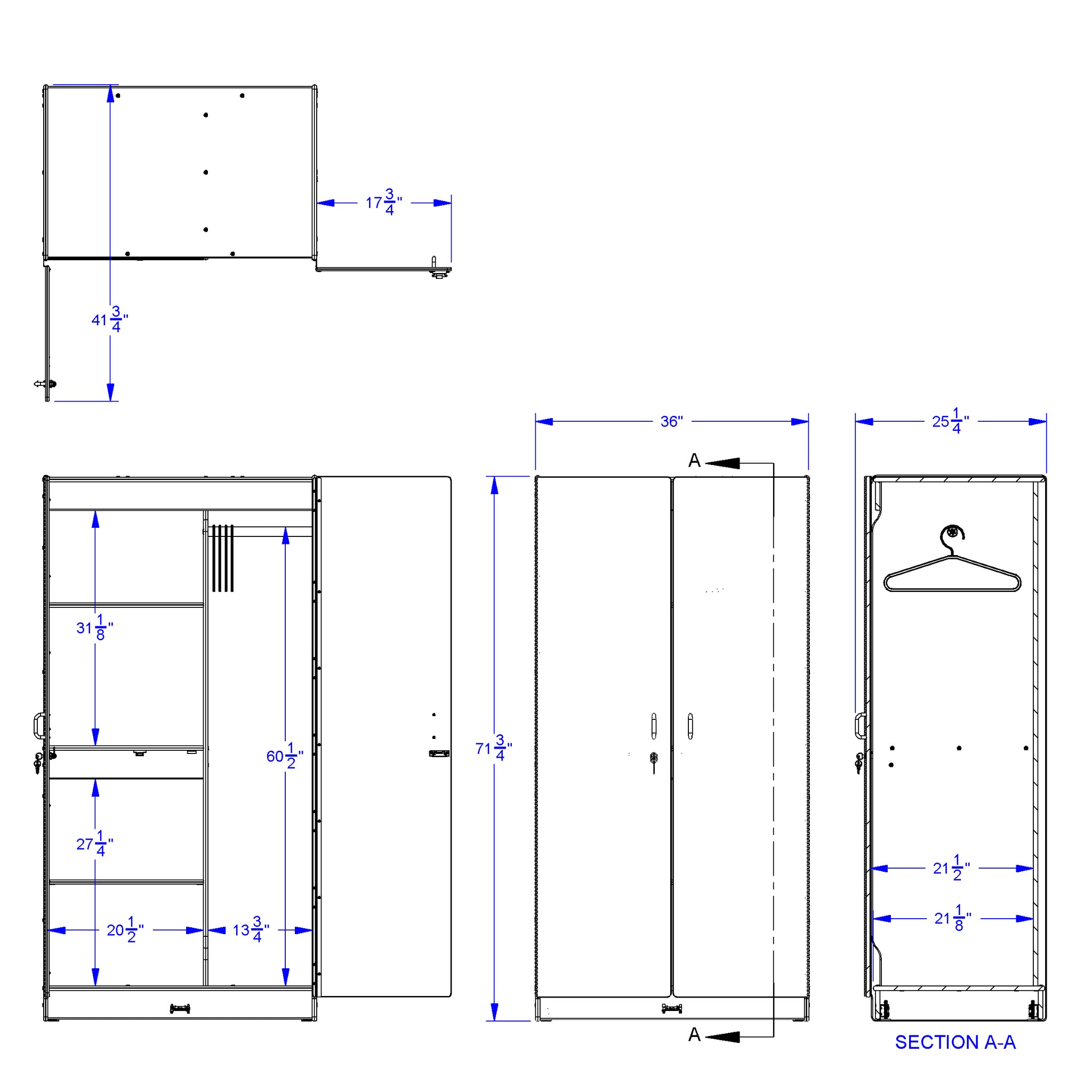 Dimensions: 72" High x 36" Wide x 24" Deep