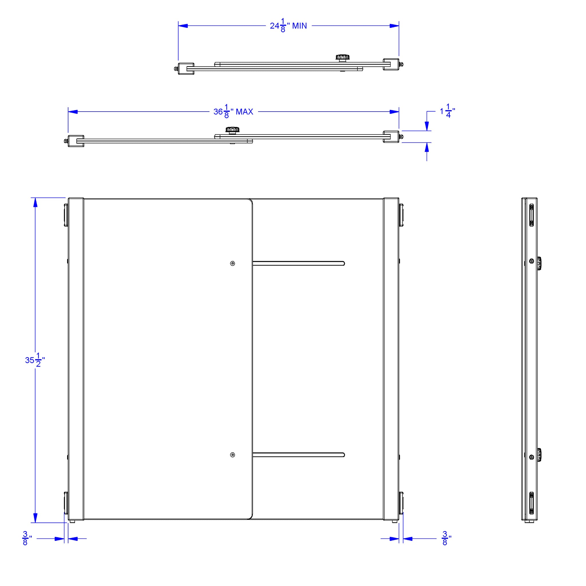Dimensions: 35.5" High x 24-36" Wide x 2" Deep