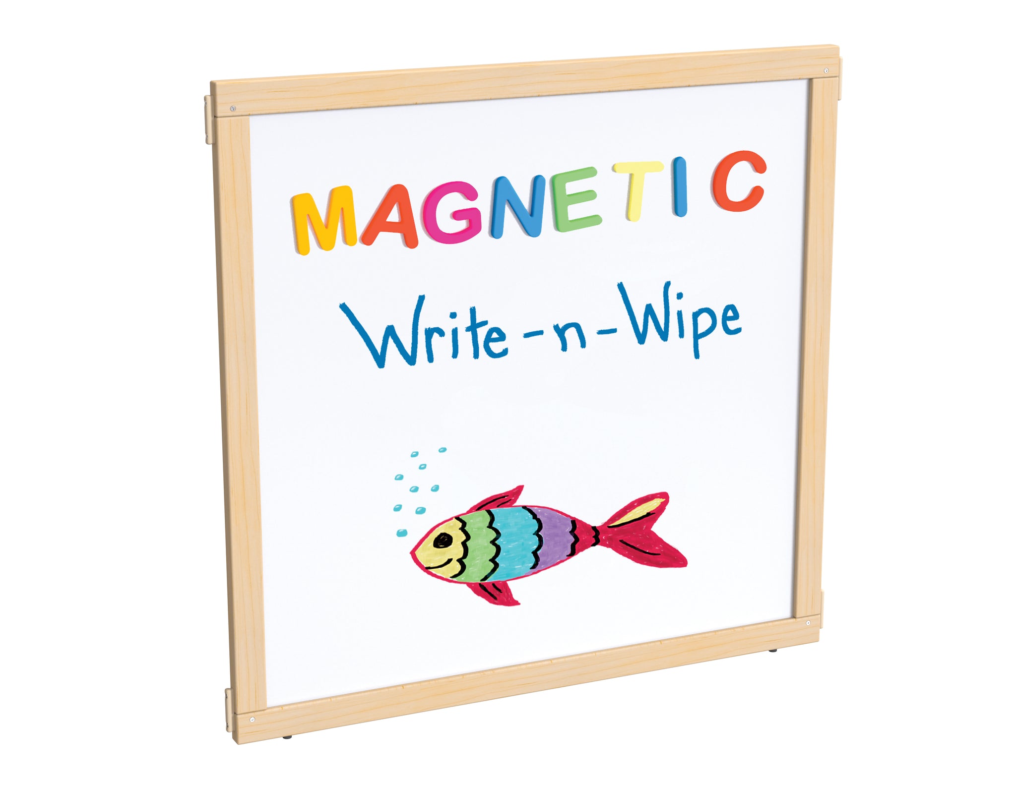 Magnetic Write-n-Wipe Panels help create or define a space and will convert any unit into a language enrichment center. Magnetic Write-n-Wipe surface provide tactiles learning and helps improve fine motor skills. One-side Magnetic Write-n-Wipe, other side finished hardboard. Connect to A-Height Hubs (35.5" high).
