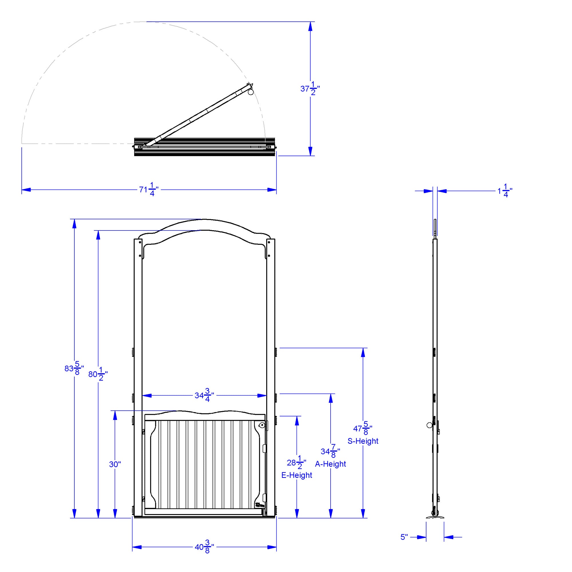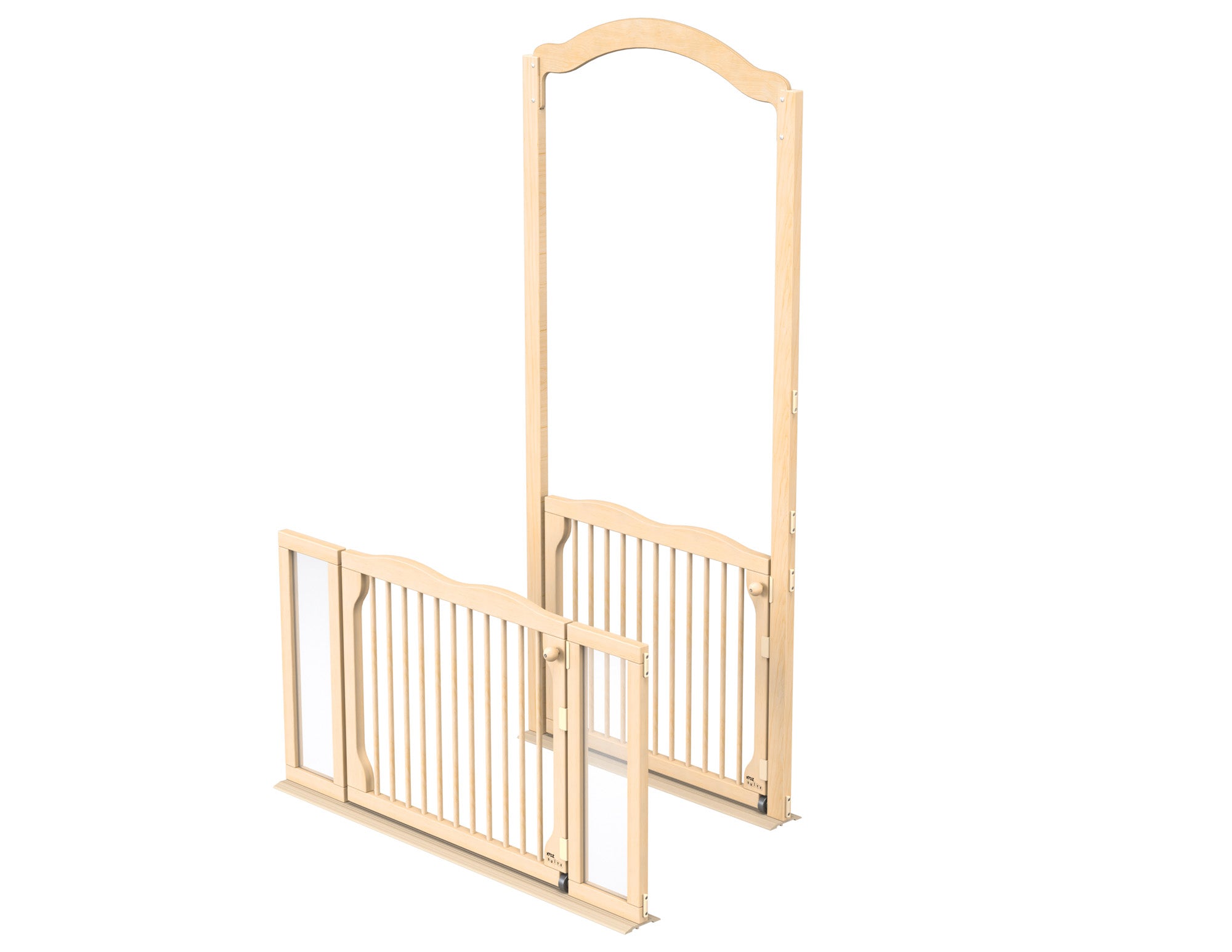 Tall archway provides character to any KYDZ Suite® space. Gate entrance is 32" wide and 80" tall for wheelchair accessibility (meets ADA Guidelines) and includes aluminum threshold for exceptional stability. Constructed from hard Maple treated with KYDZTuff® finish. Gate latch placed on outside for safety. Connect to either E-Height Hubs (29.5" high) or A-Height Hubs (35.5" high).