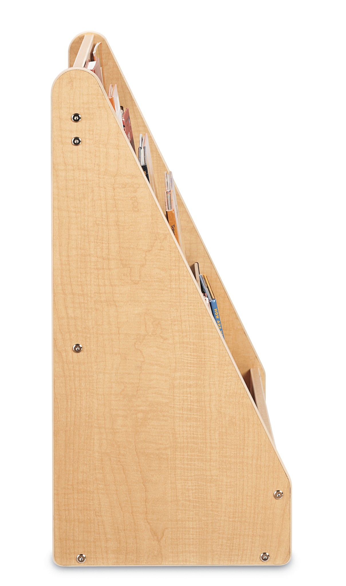 Arrange books on the five graduated shelves. Designed to fit flush against a wall.