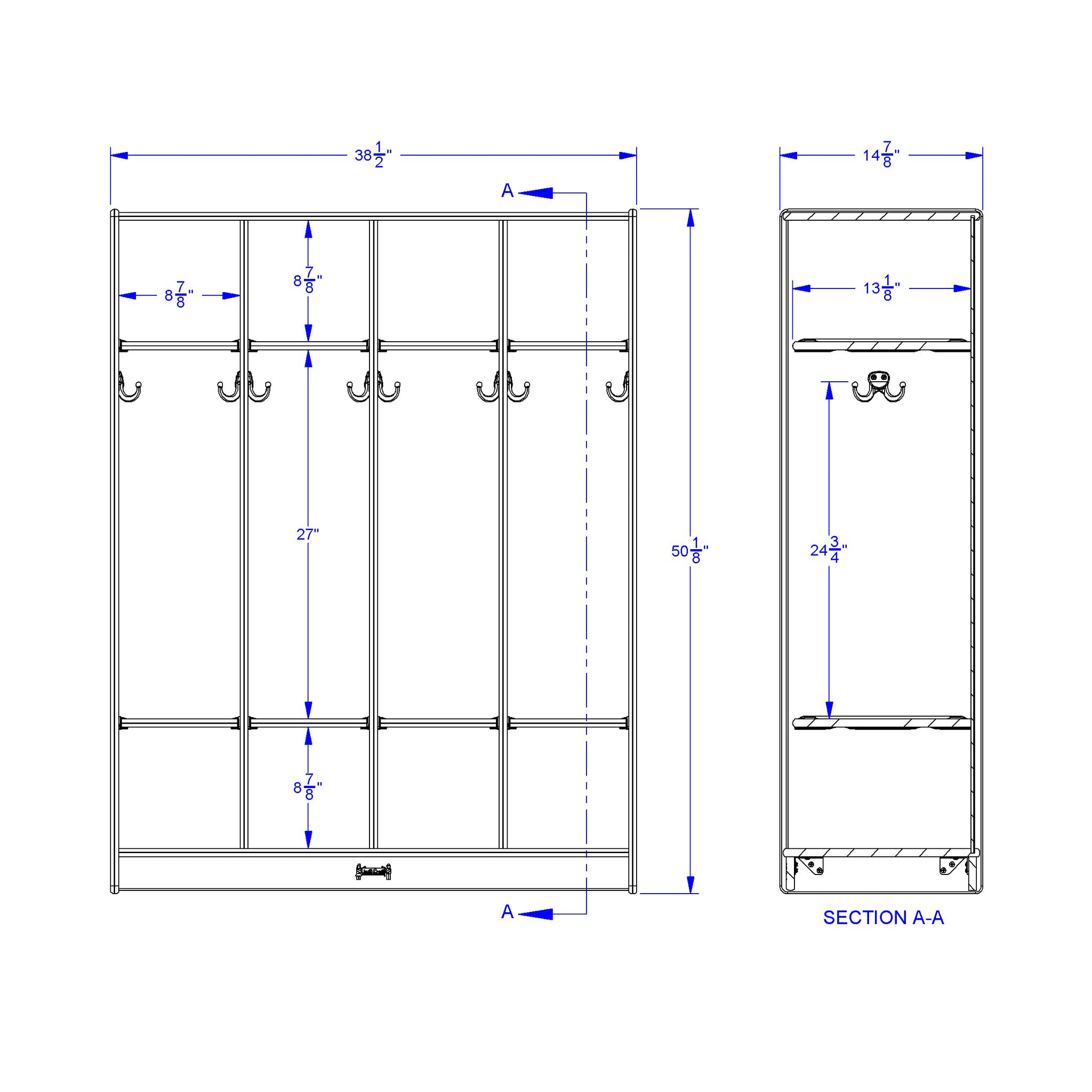 Stow jackets, backpacks, boots and lunch boxes. Two, double coat hooks in each locker.
