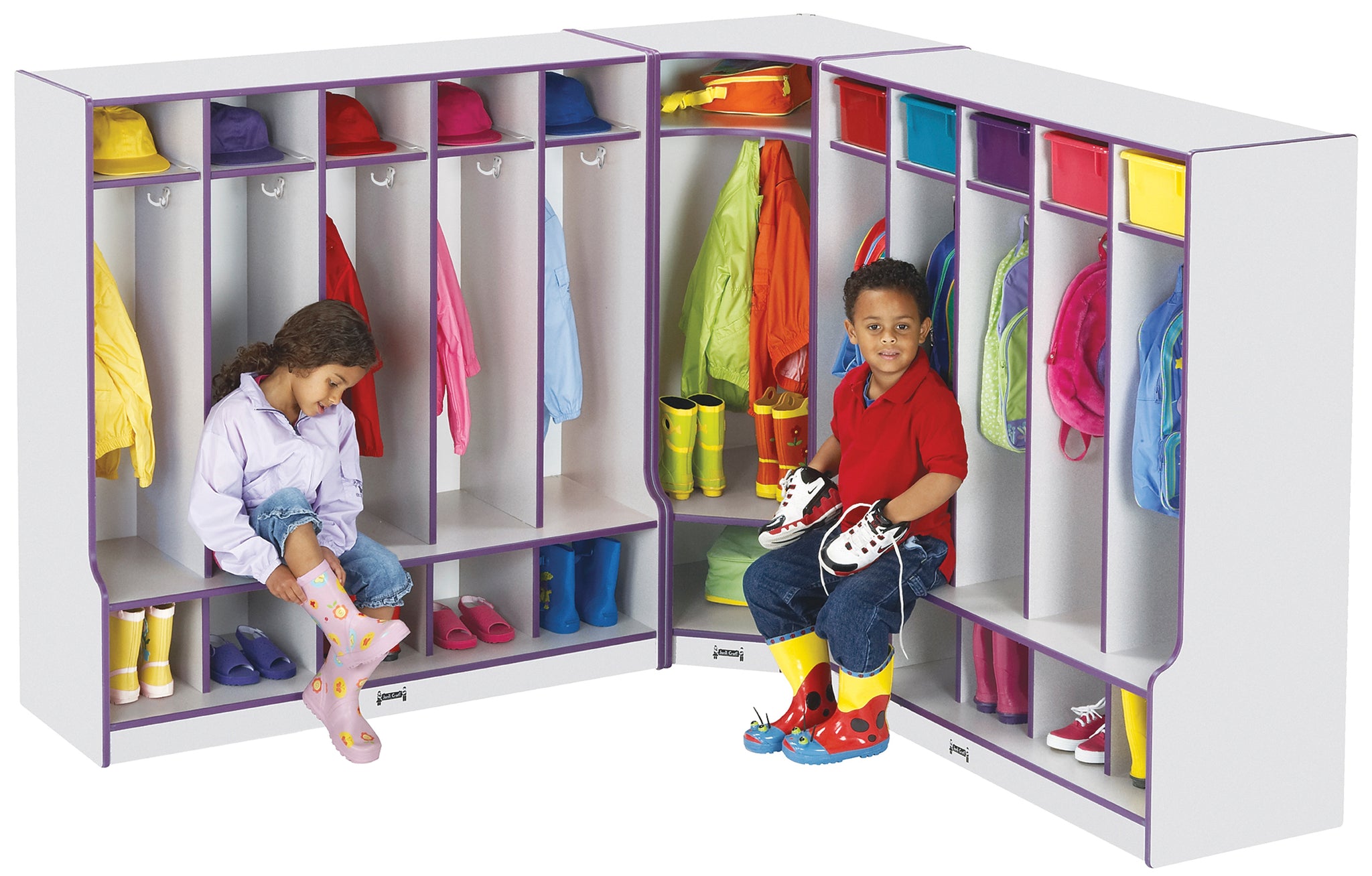 Make tying shoes and putting on boots easy with this locker with a handy edge. Two double coat hooks in each section provide maximum storage for bags and coats.