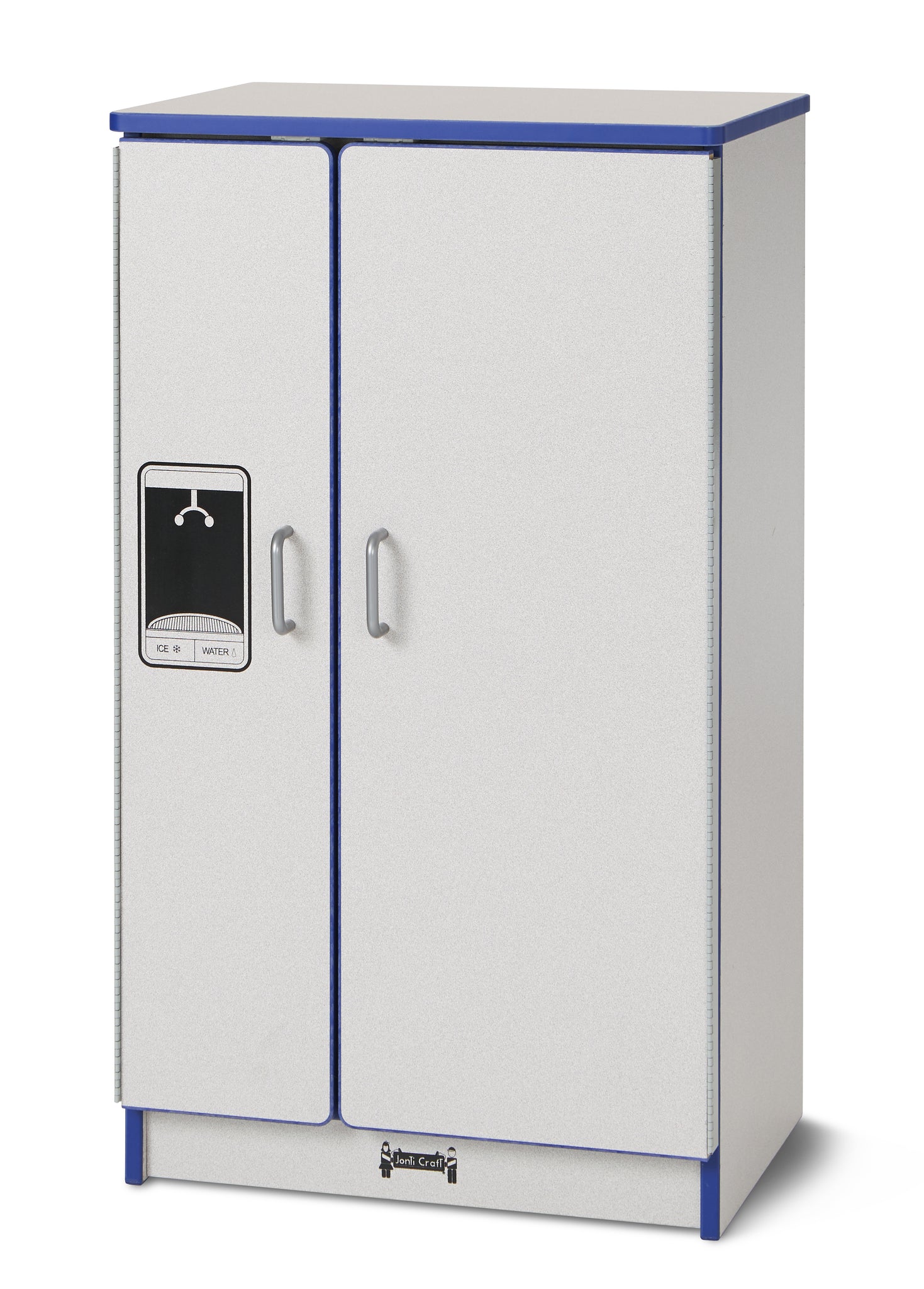 Inspire budding chefs with this kitchen refrigerator. Multiple interior shelves provide plenty of storage for food and dishes. Printed water and icemaker make for realistic play. Magnetic catches help keep doors closed while chrome-looking handles provide a high-end aesthetic. Features freckled-gray laminate and yellow TRUEdge®.