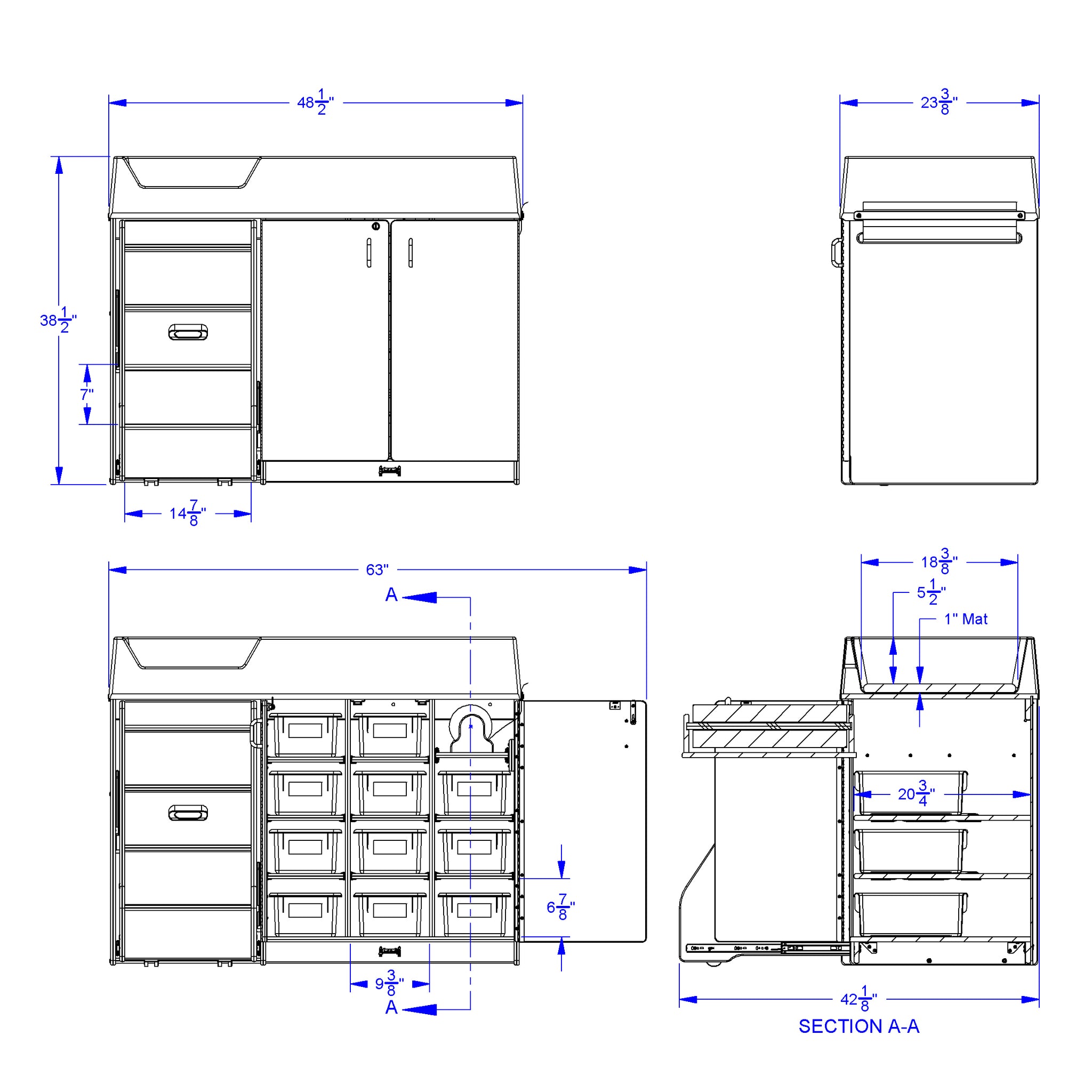 The 6.5" deep plastic top and laminate surfaces on this changing table keep little ones secure and stands up to rigorous cleaning. The lockable pull-out stairs located on the left side of the unit contain anti-slip treads for safety. Included changing pad keeps kids comfortable while changing. The included, 11 colored Cubbie-Trays make it easy to keep supplies organized and are located behind secured doors for safety. Glide-out paper dispenser (paper not included) keeps paper handy and easily accessible. Features speckled-gray laminate surface with purple TRUEdge®.