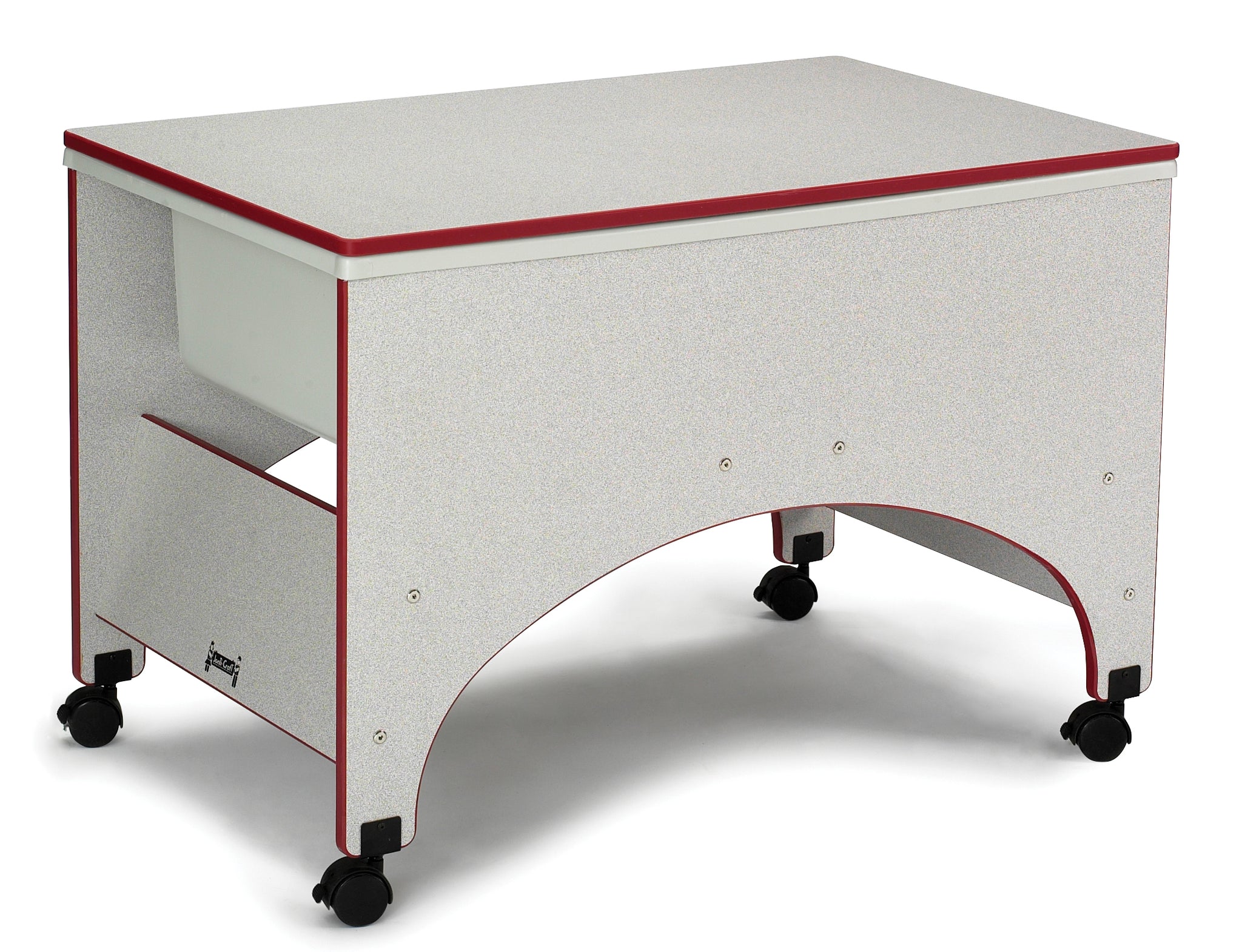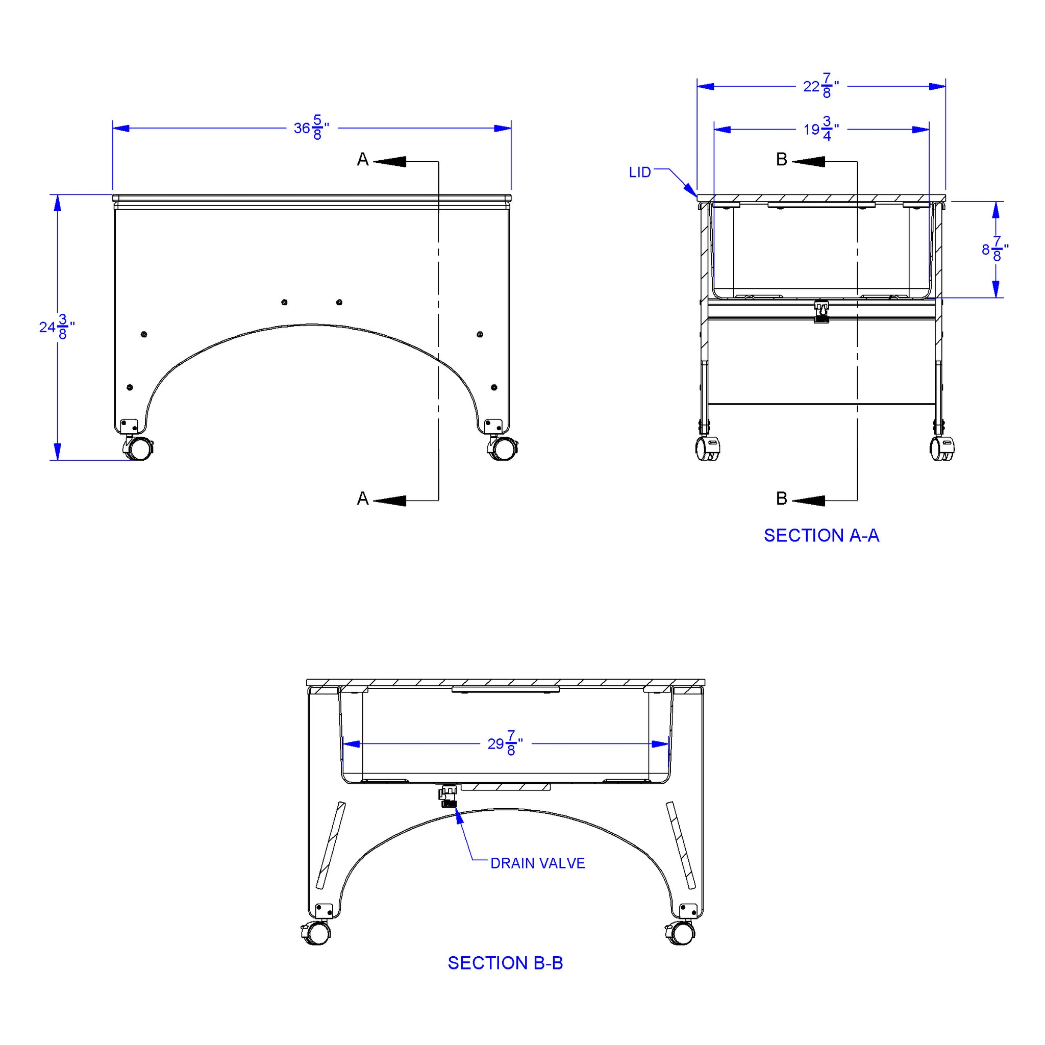 A sensory made for the small spaces! Extra deep 9" tub provides maximum splash containment, and the drain with valve provides easy cleanup. Unlock the casters and wheel from room to room. Activity cover included.