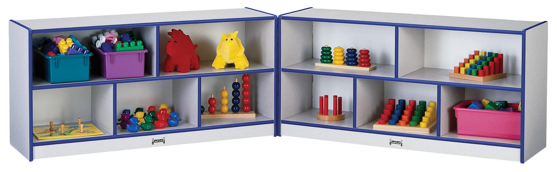 Extra storage at the perfect height for young toddlers. Fold the wings together and lock the hasp when security is desired. Each wing is 48" wide x 15" deep x 24.5" high, unit opens to eight feet.