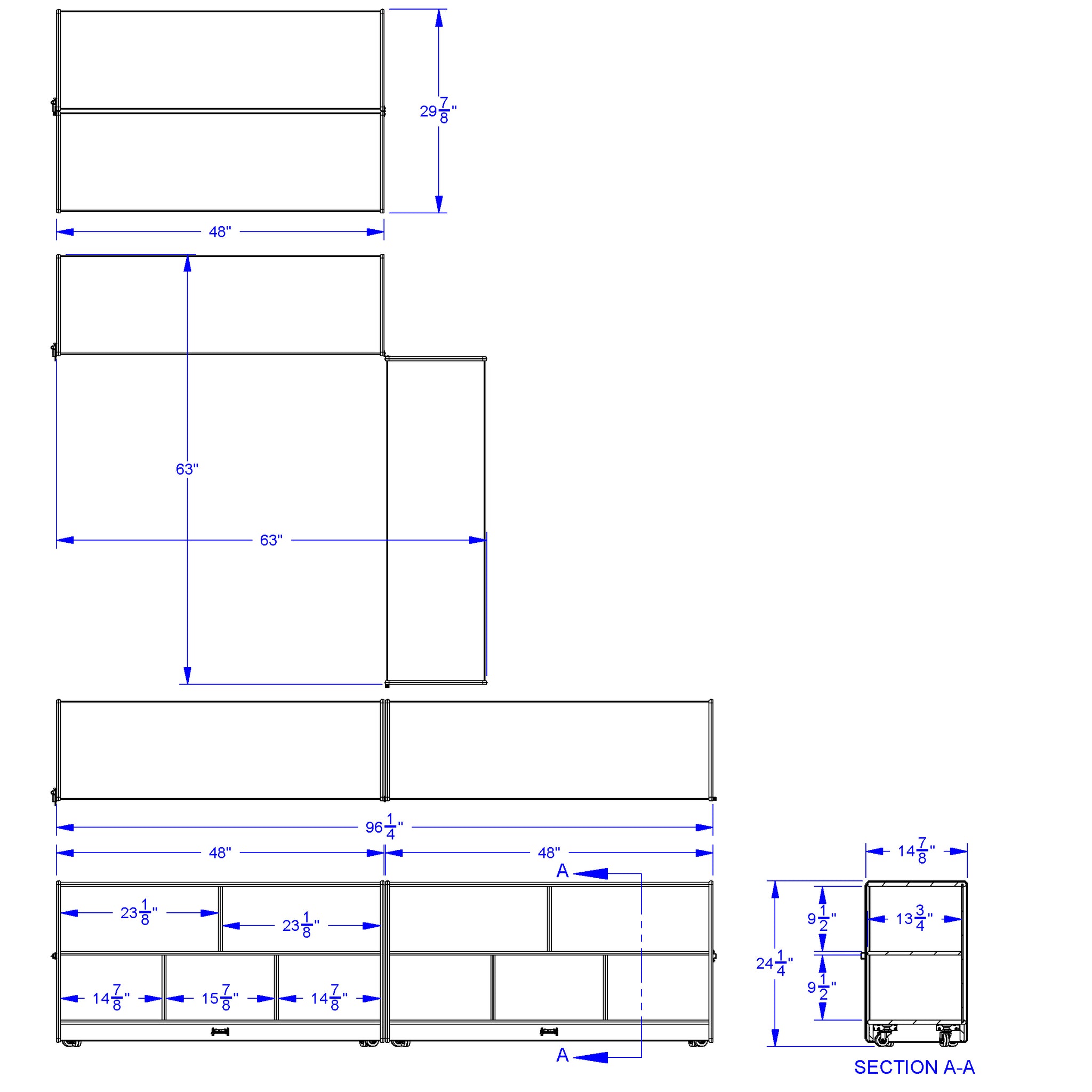 Dimensions: 24.5" High x 96" Wide x 15" Deep