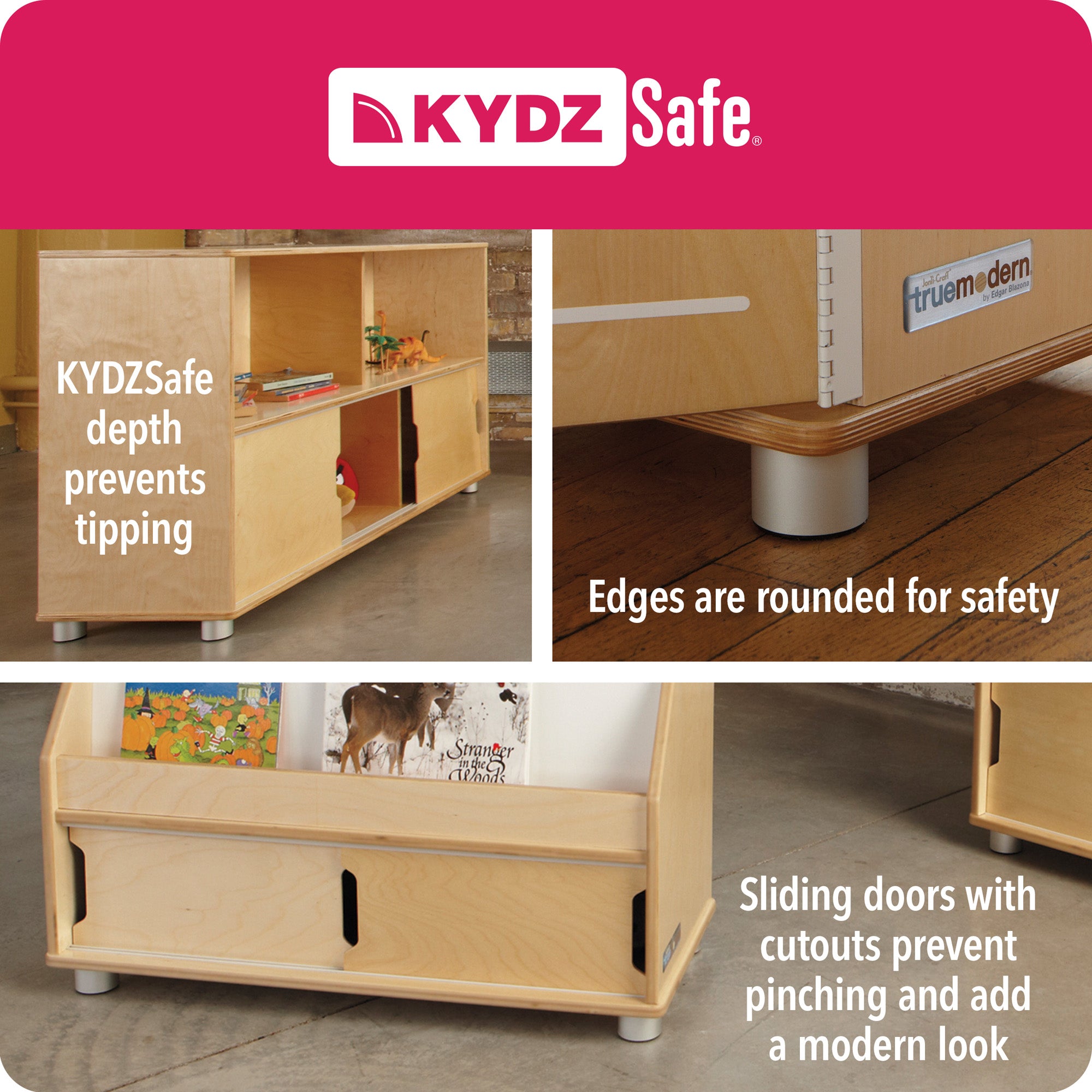 Side-by-side two-door fridge and freezer, just like at home. Freezer has inset ice dispenser. Fridge has Write-n-Wipe board for grocery list. Four shelves inside. Created by renowned modernist designer—Edgar Blazona—for a sleek, cohesive, and modern design.